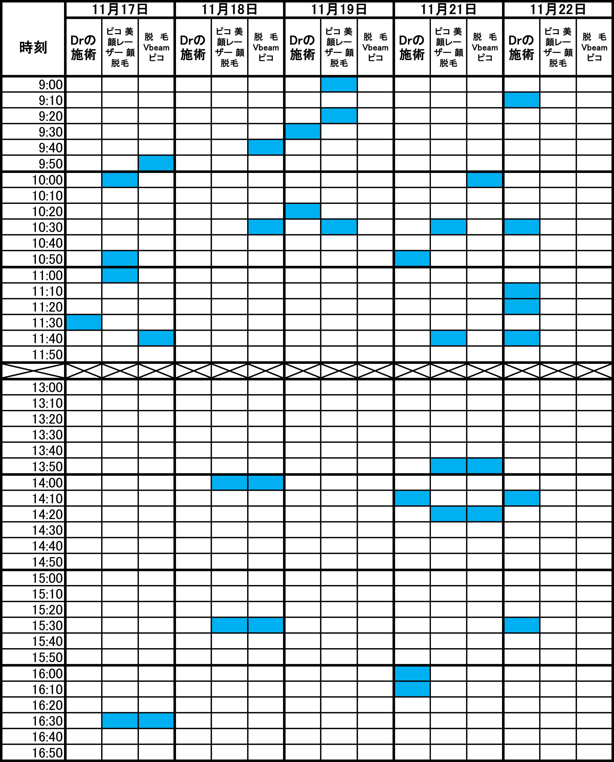 青色部分が空きです。 毎朝1回更新のため、すでに埋まっている場合があります。