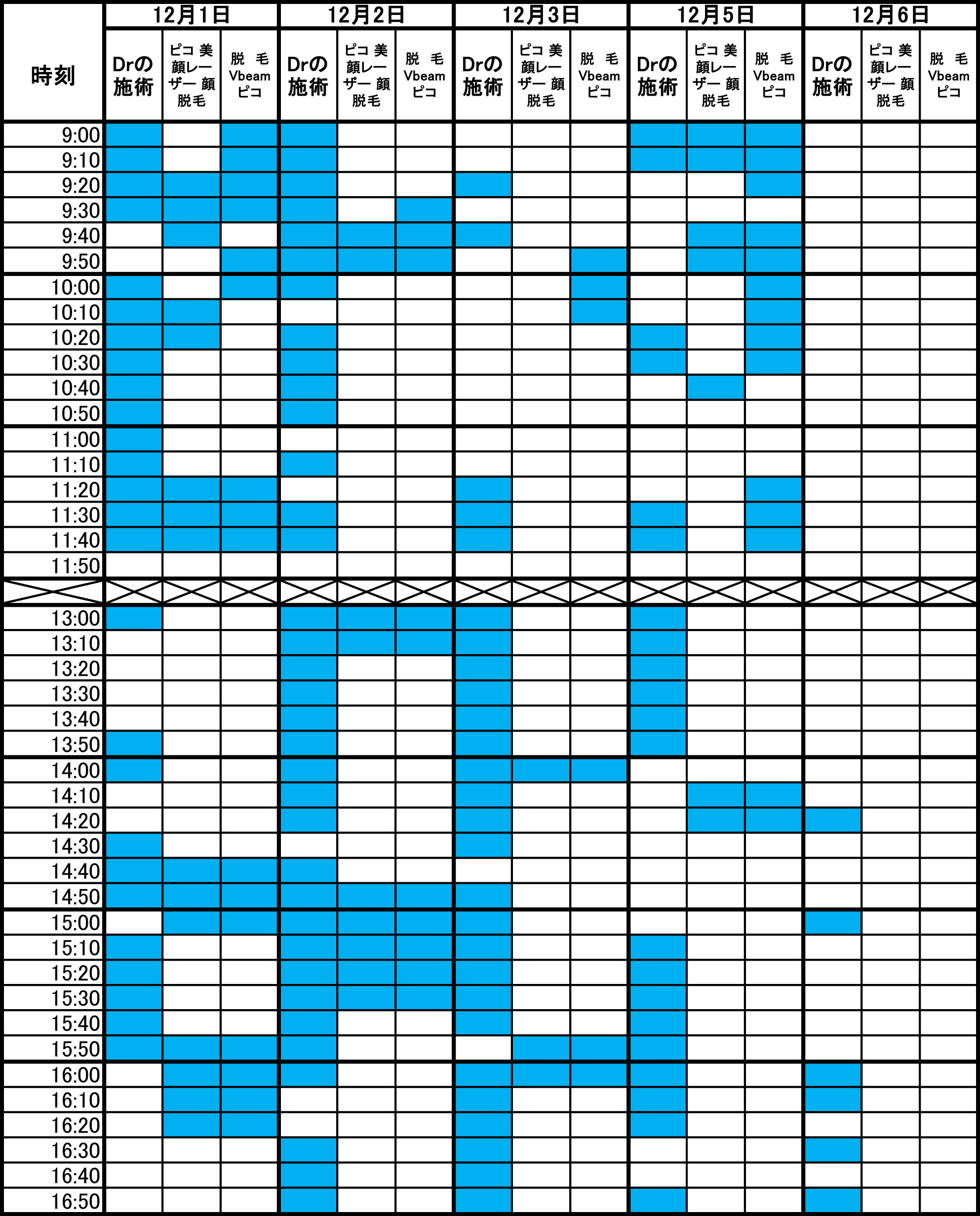 青色部分が空きです。 毎朝1回更新のため、すでに埋まっている場合があります。