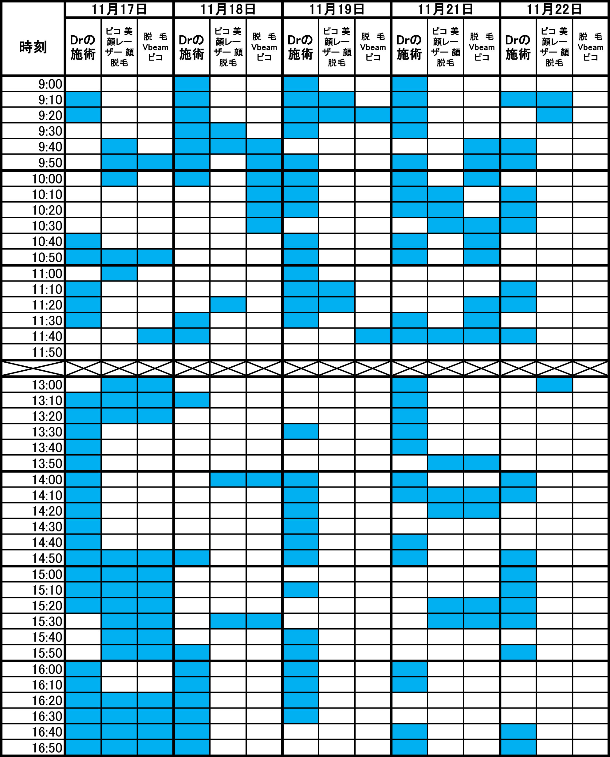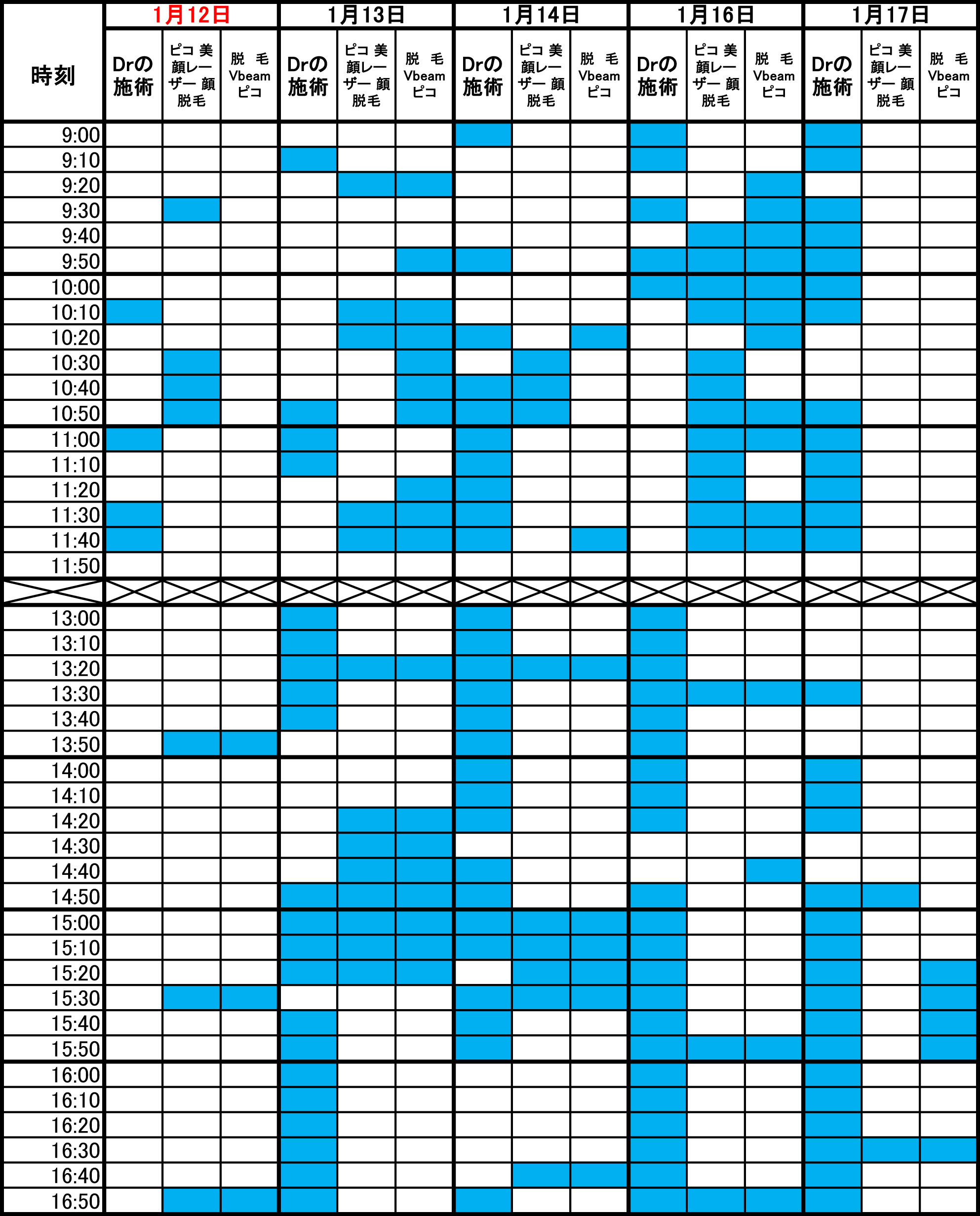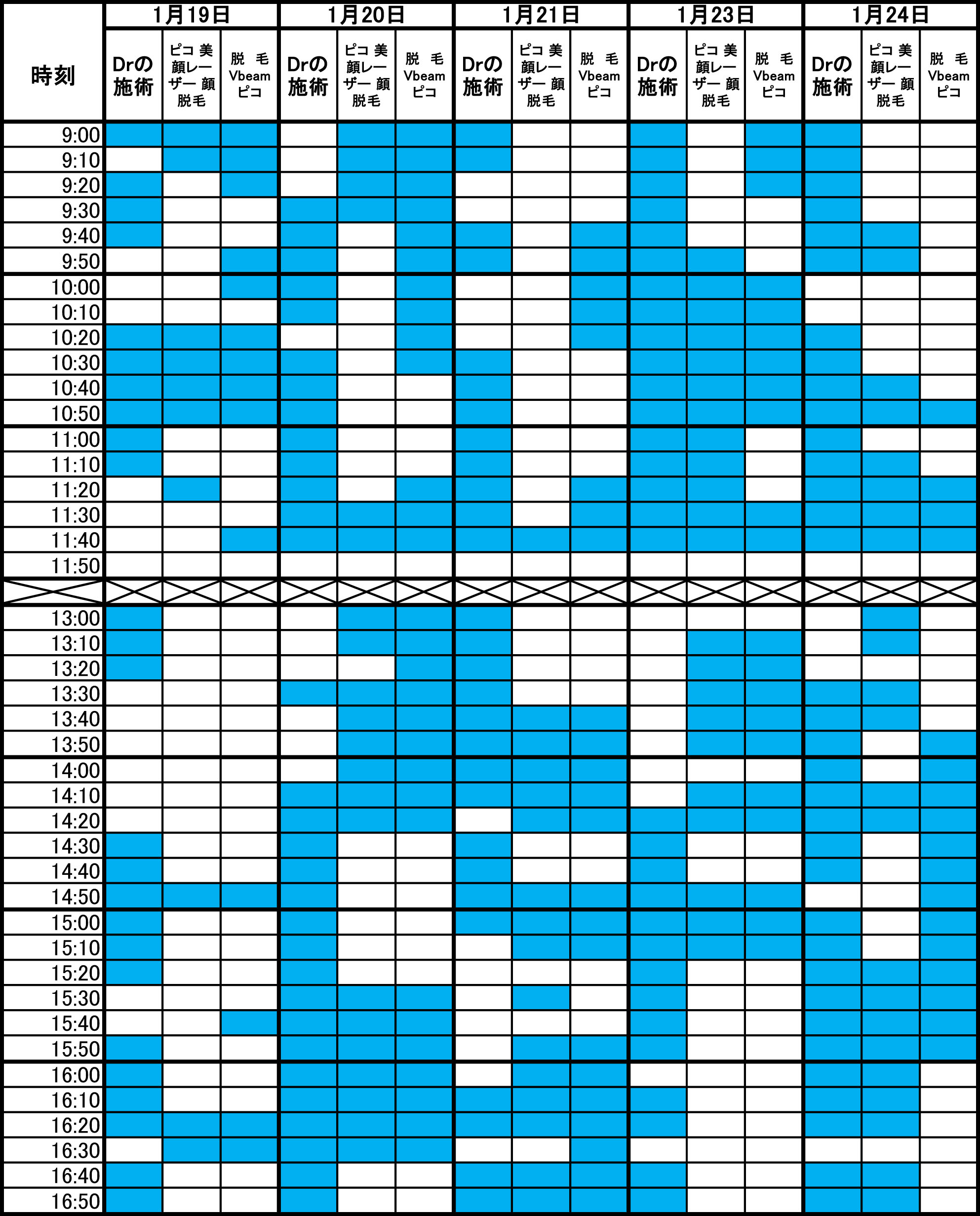 青色部分が空きです。 毎朝1回更新のため、すでに埋まっている場合があります。