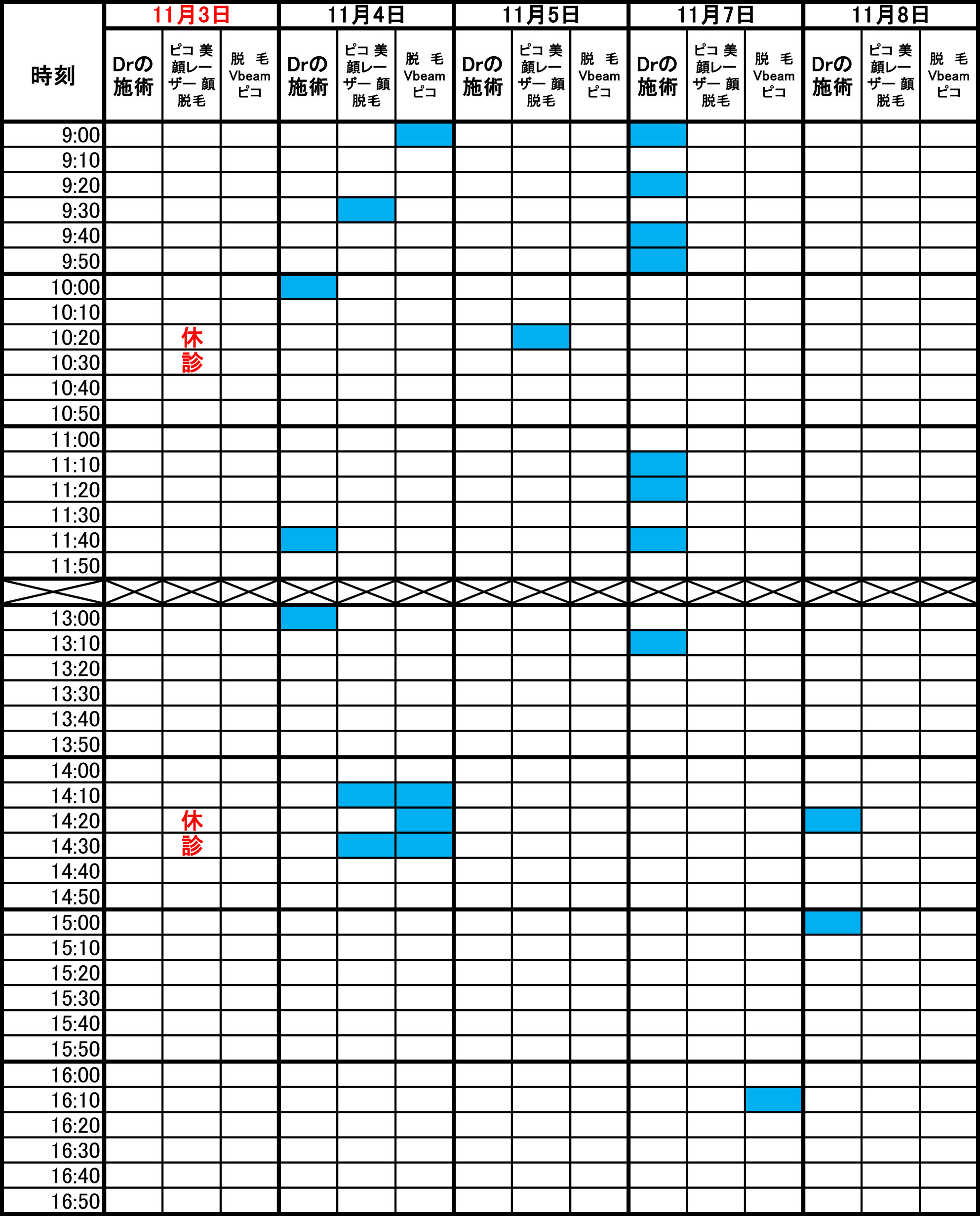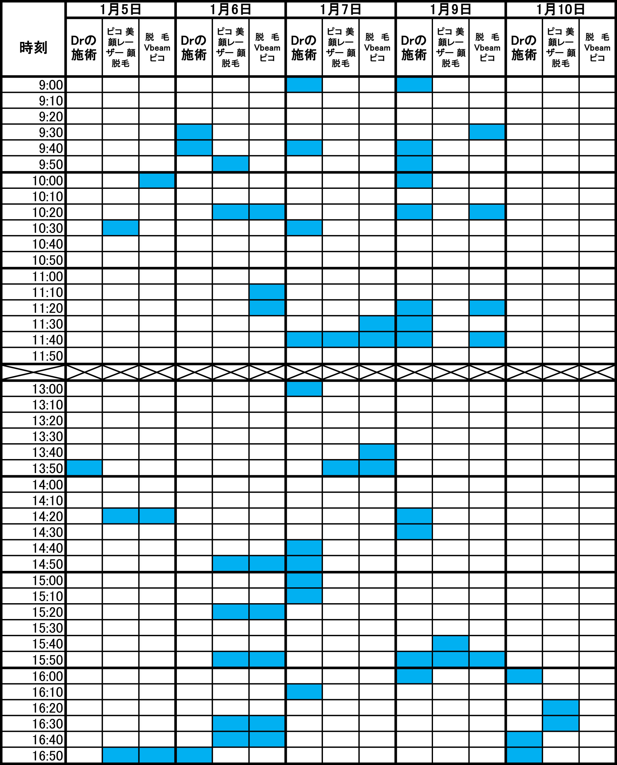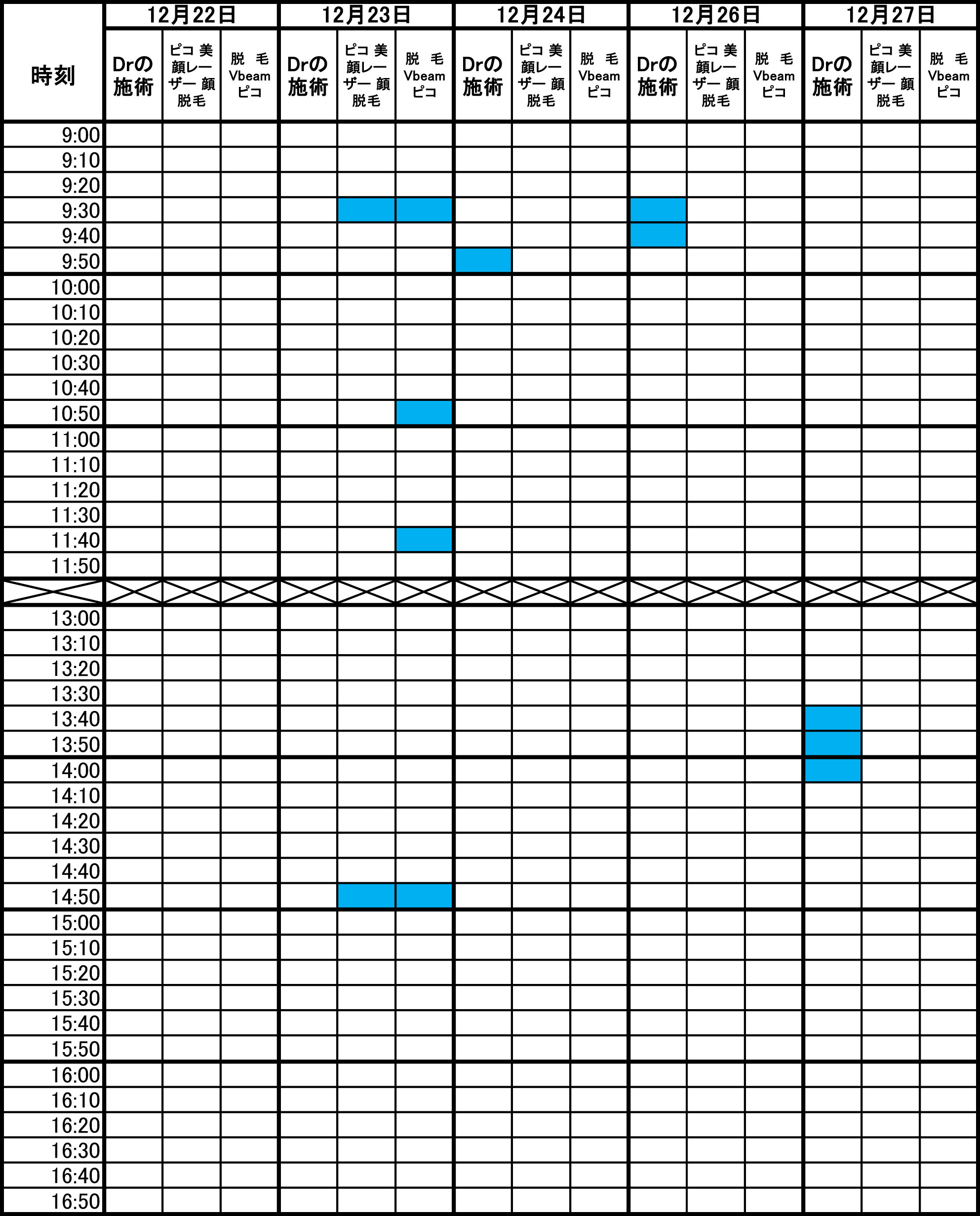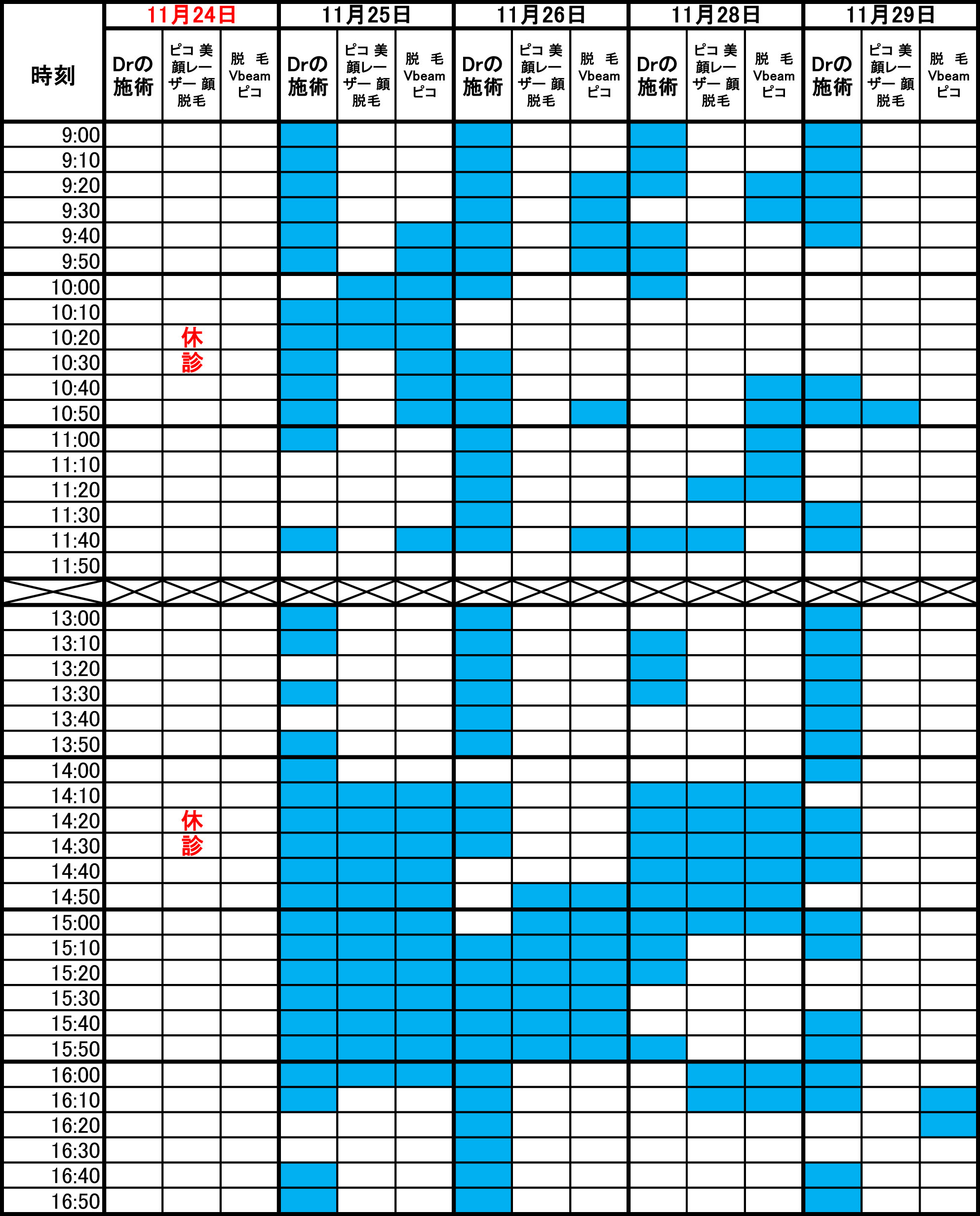 青色部分が空きです。 毎朝1回更新のため、すでに埋まっている場合があります。