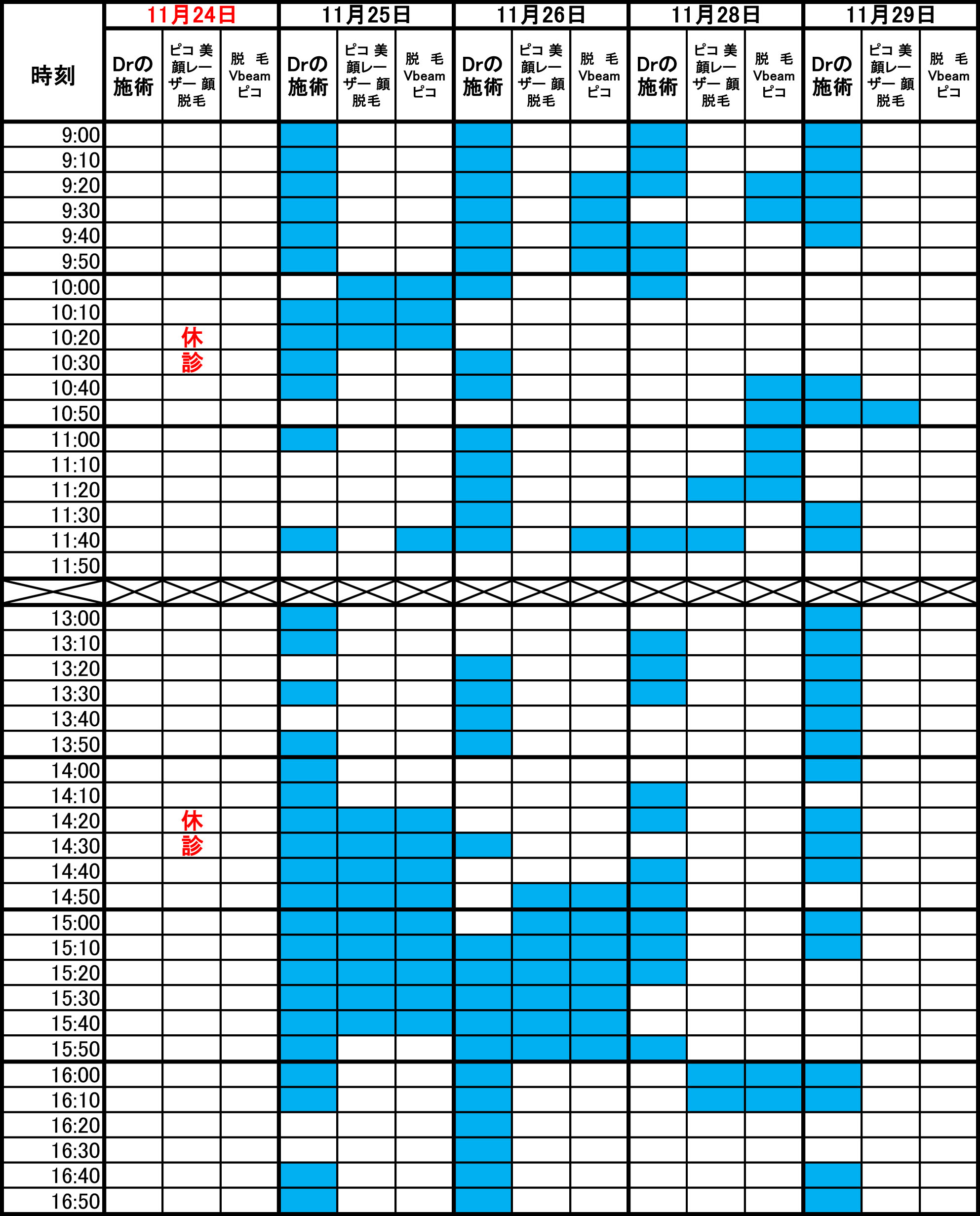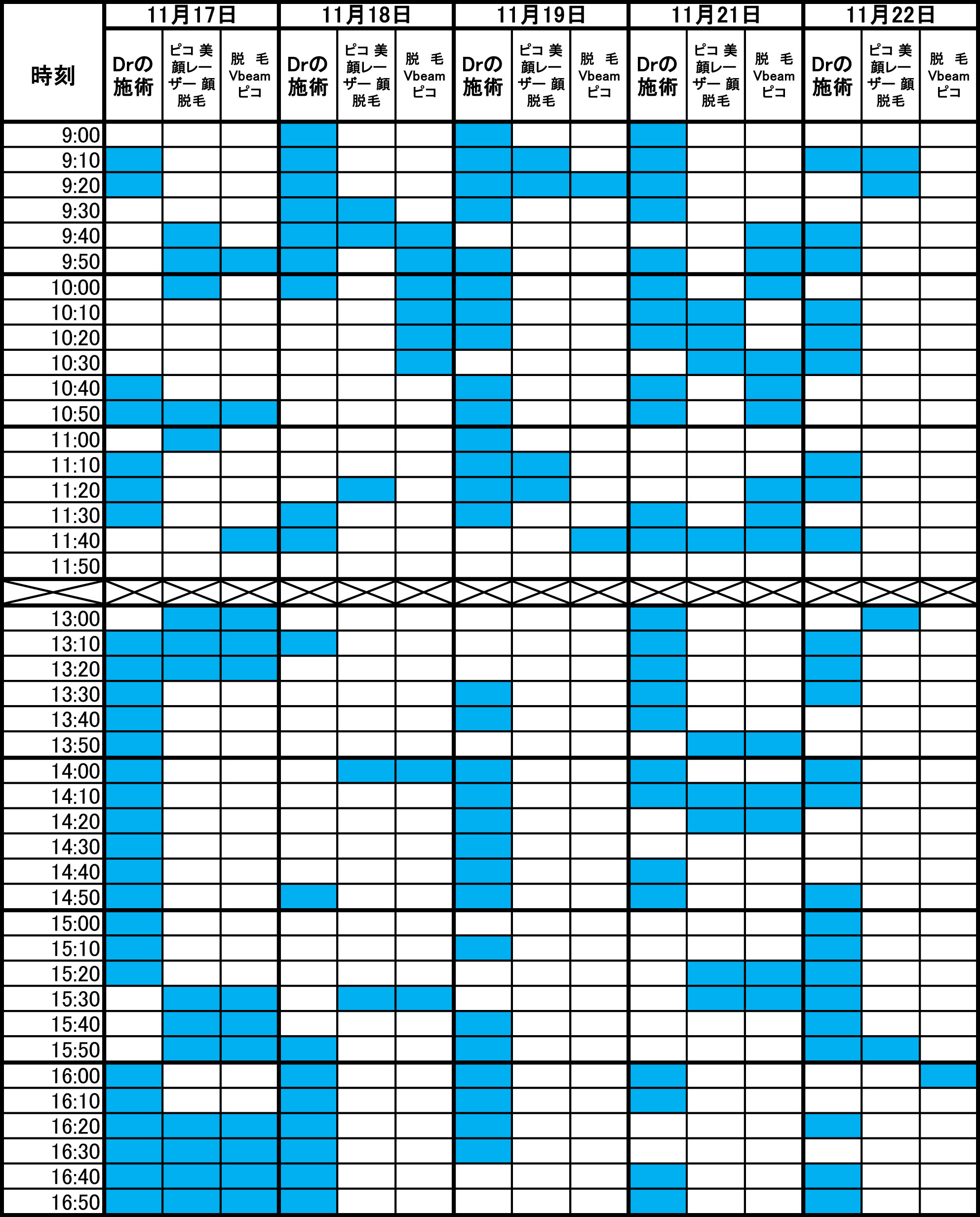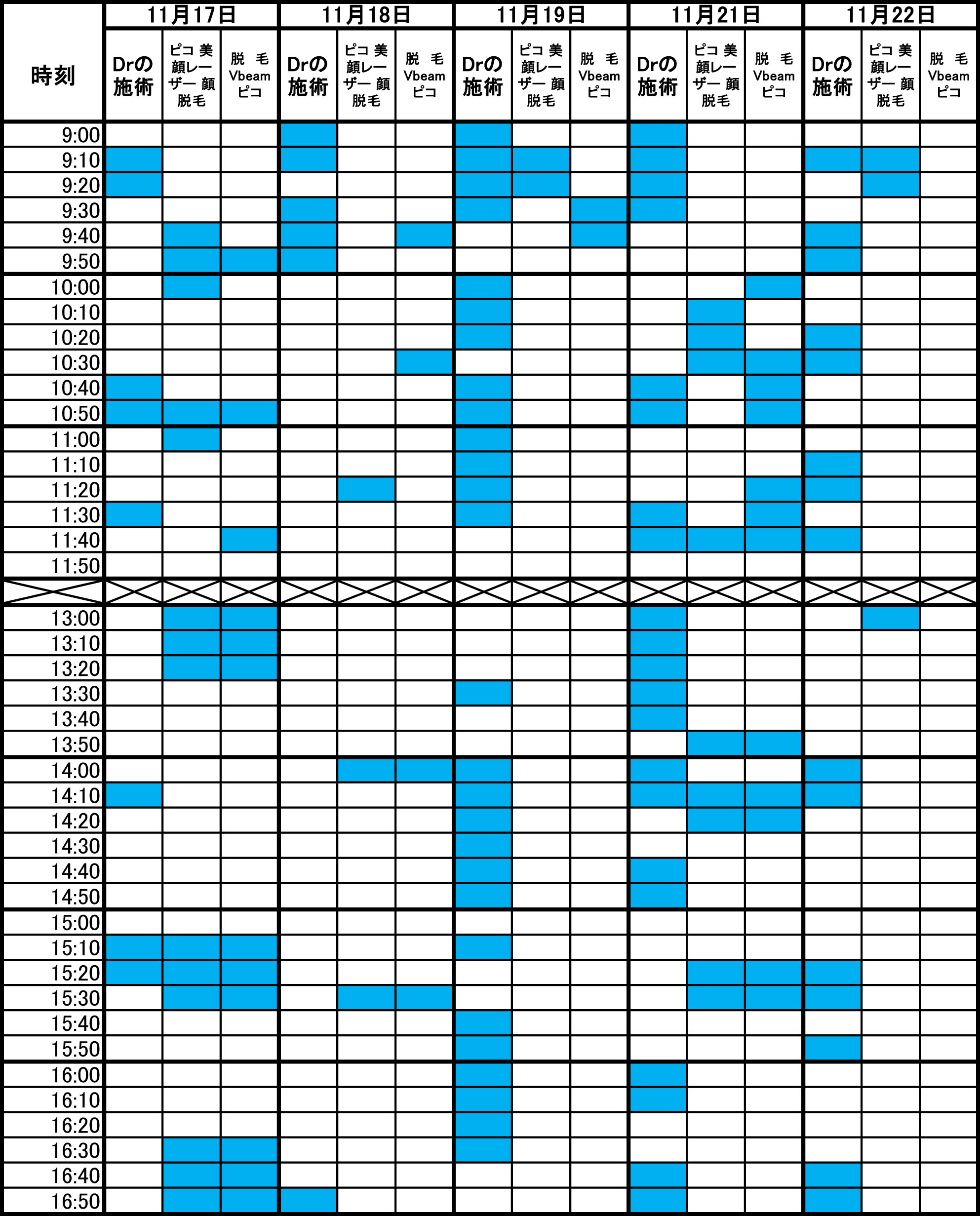 青色部分が空きです。 毎朝1回更新のため、すでに埋まっている場合があります。