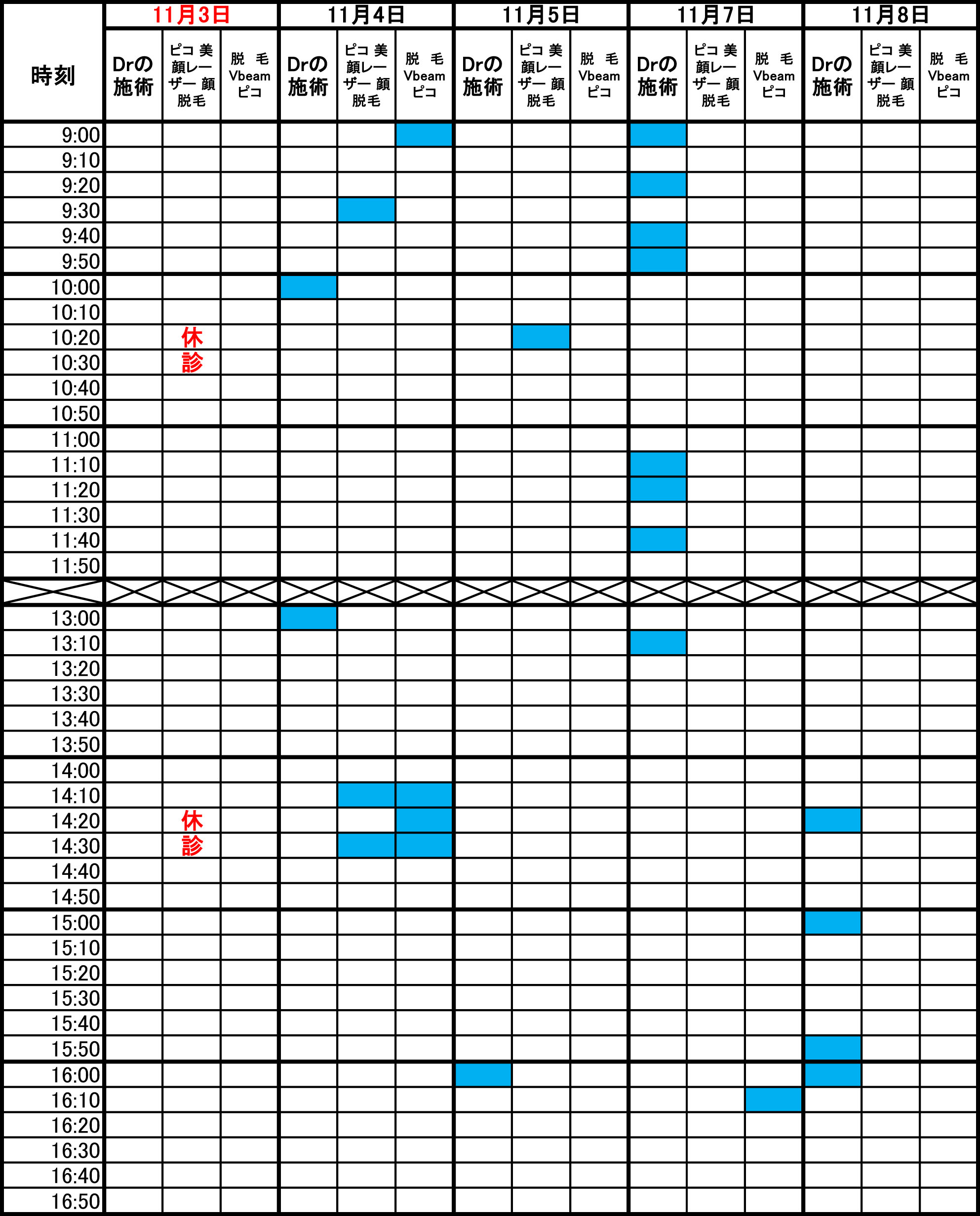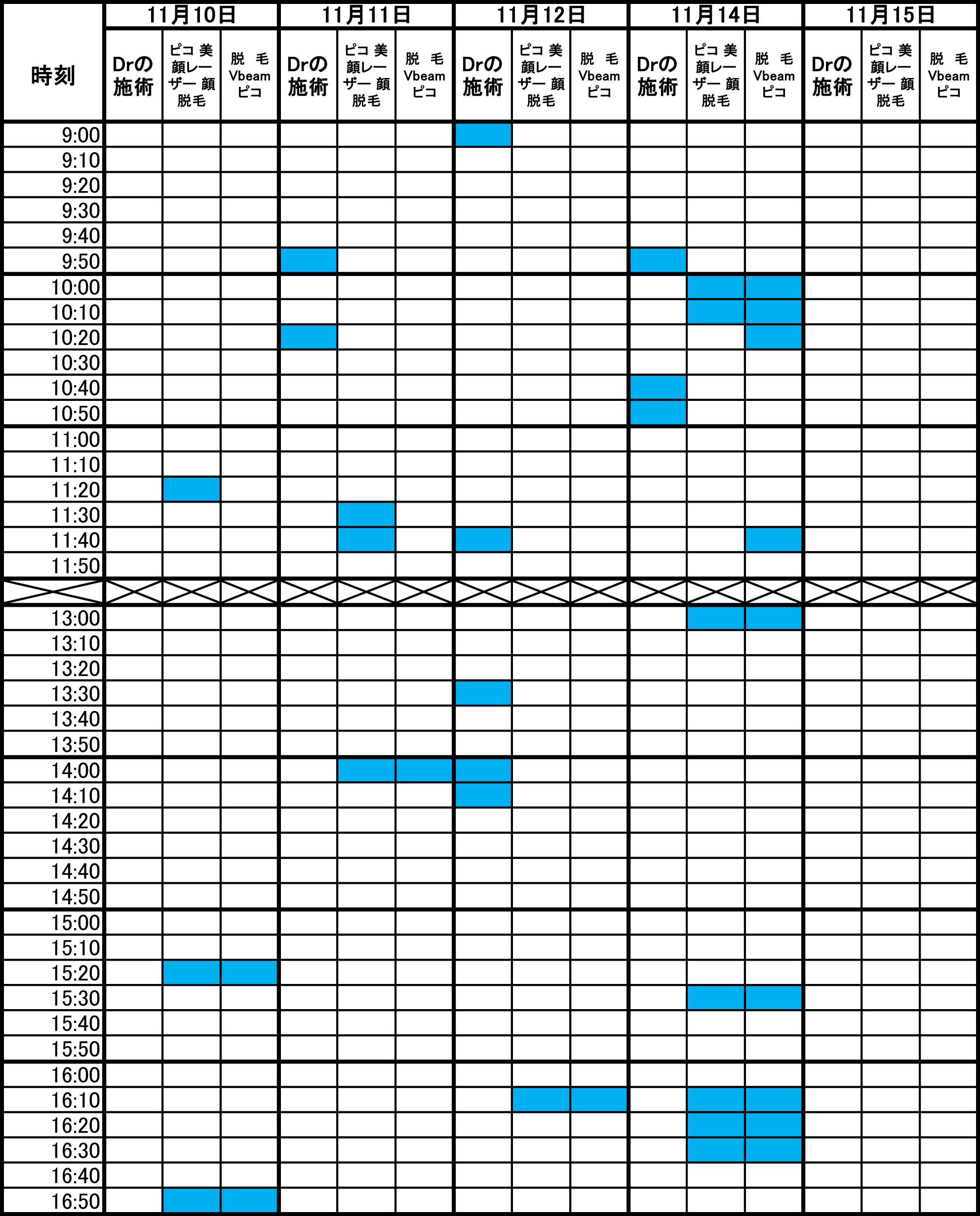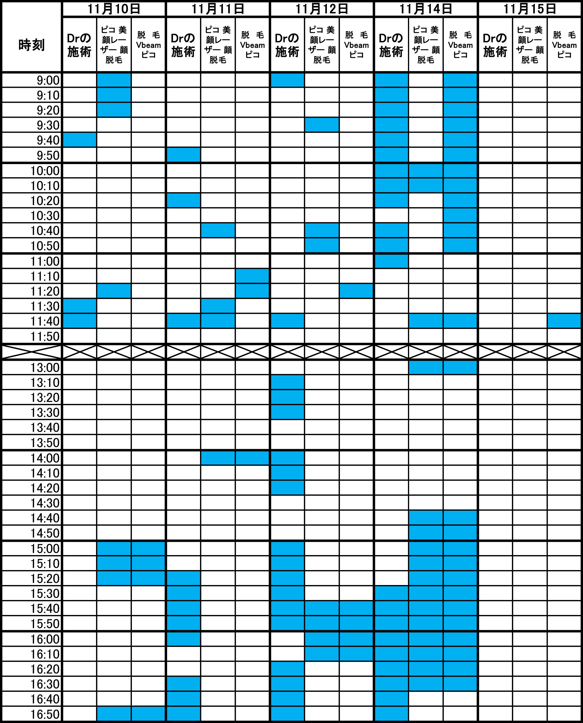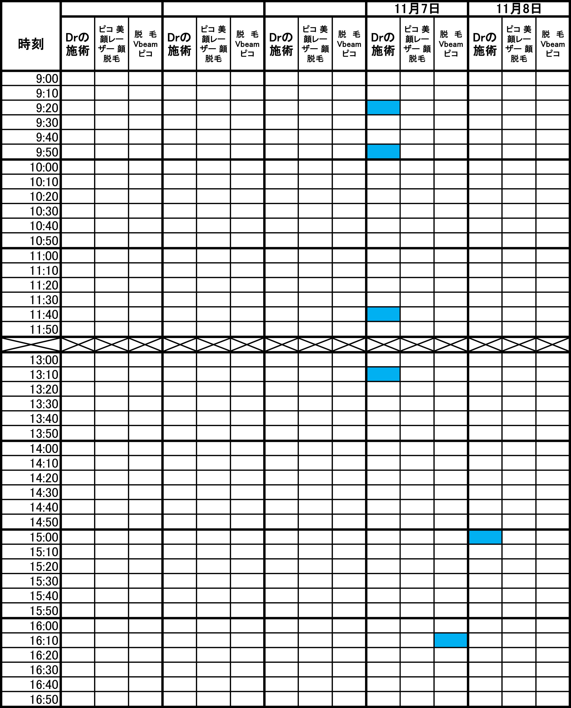 青色部分が空きです。 毎朝1回更新のため、すでに埋まっている場合があります。