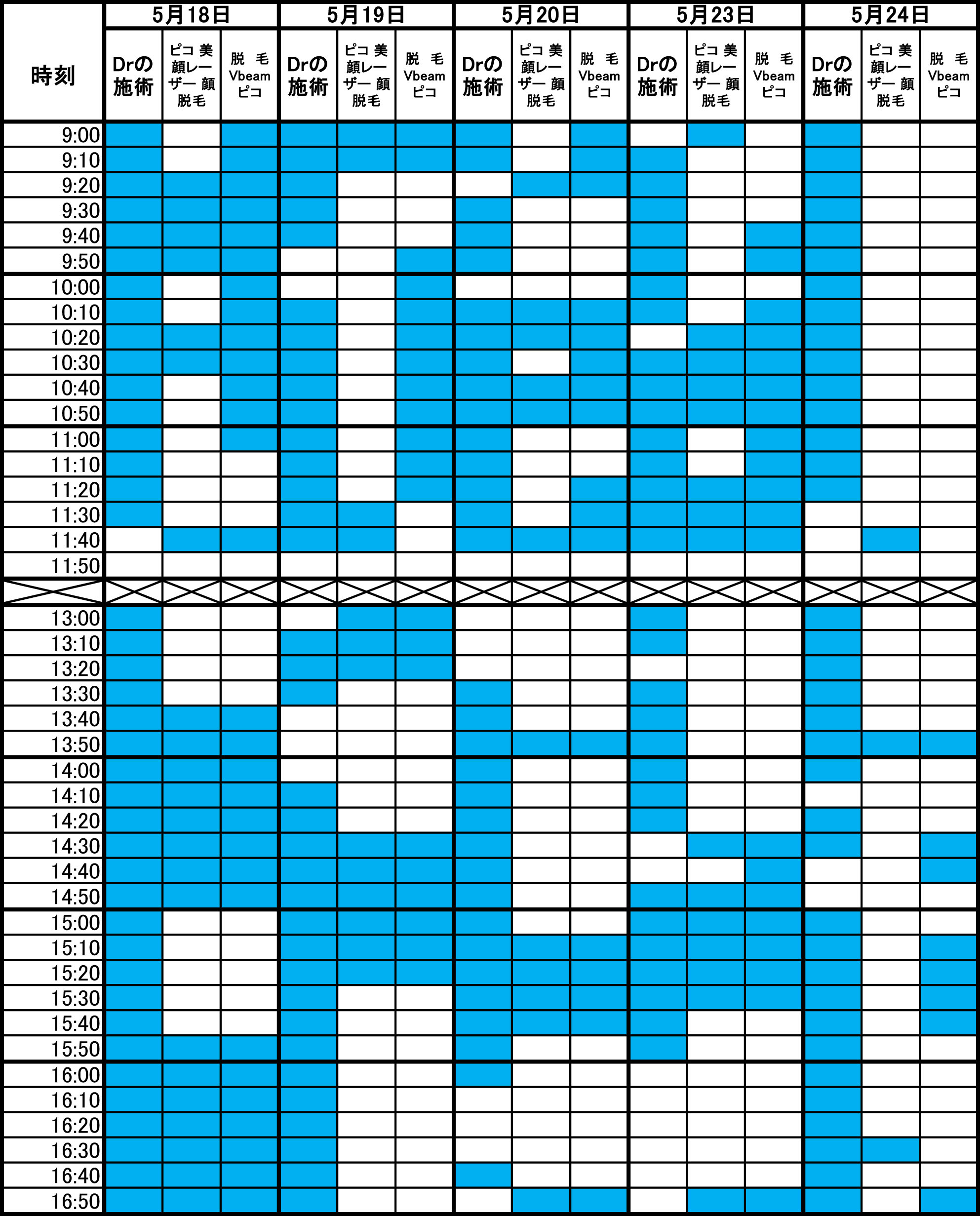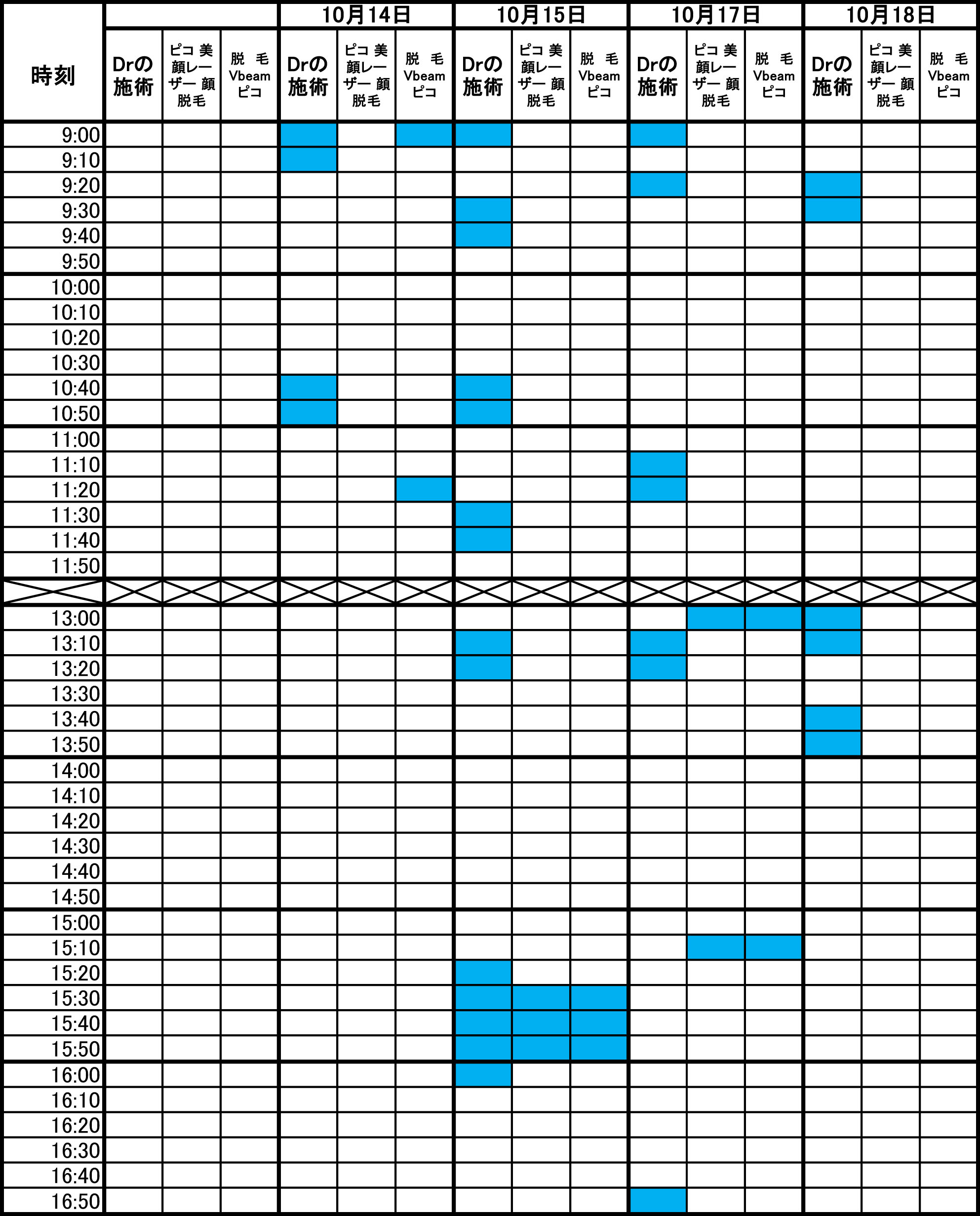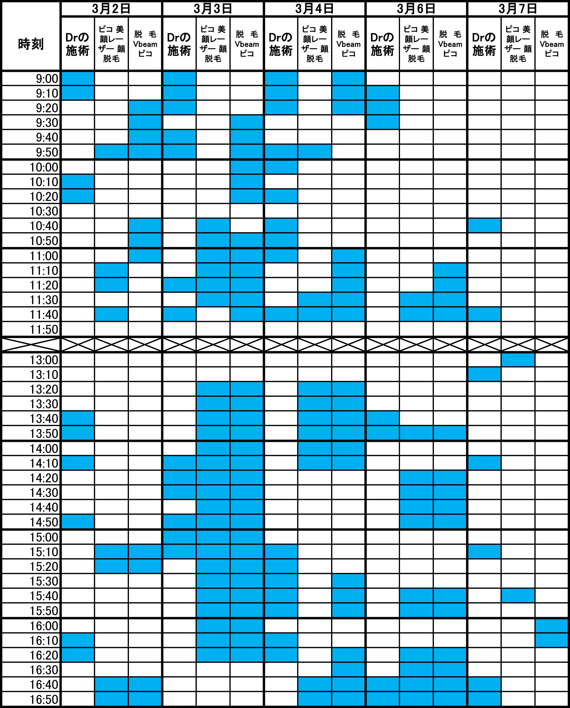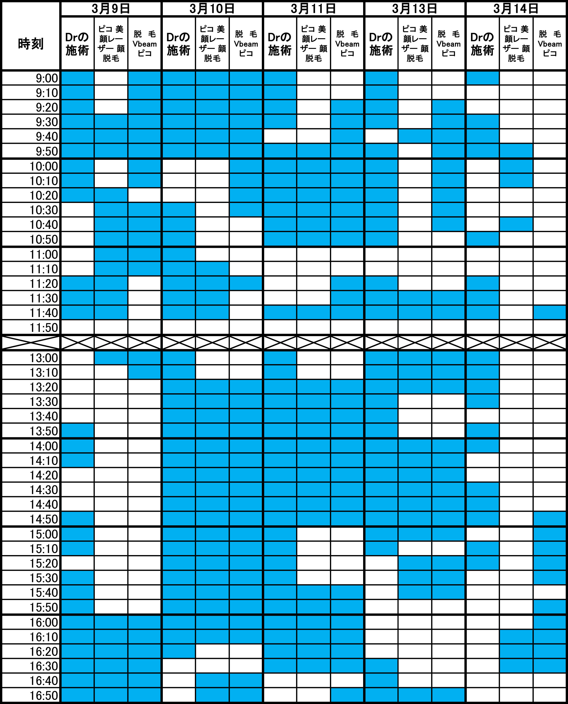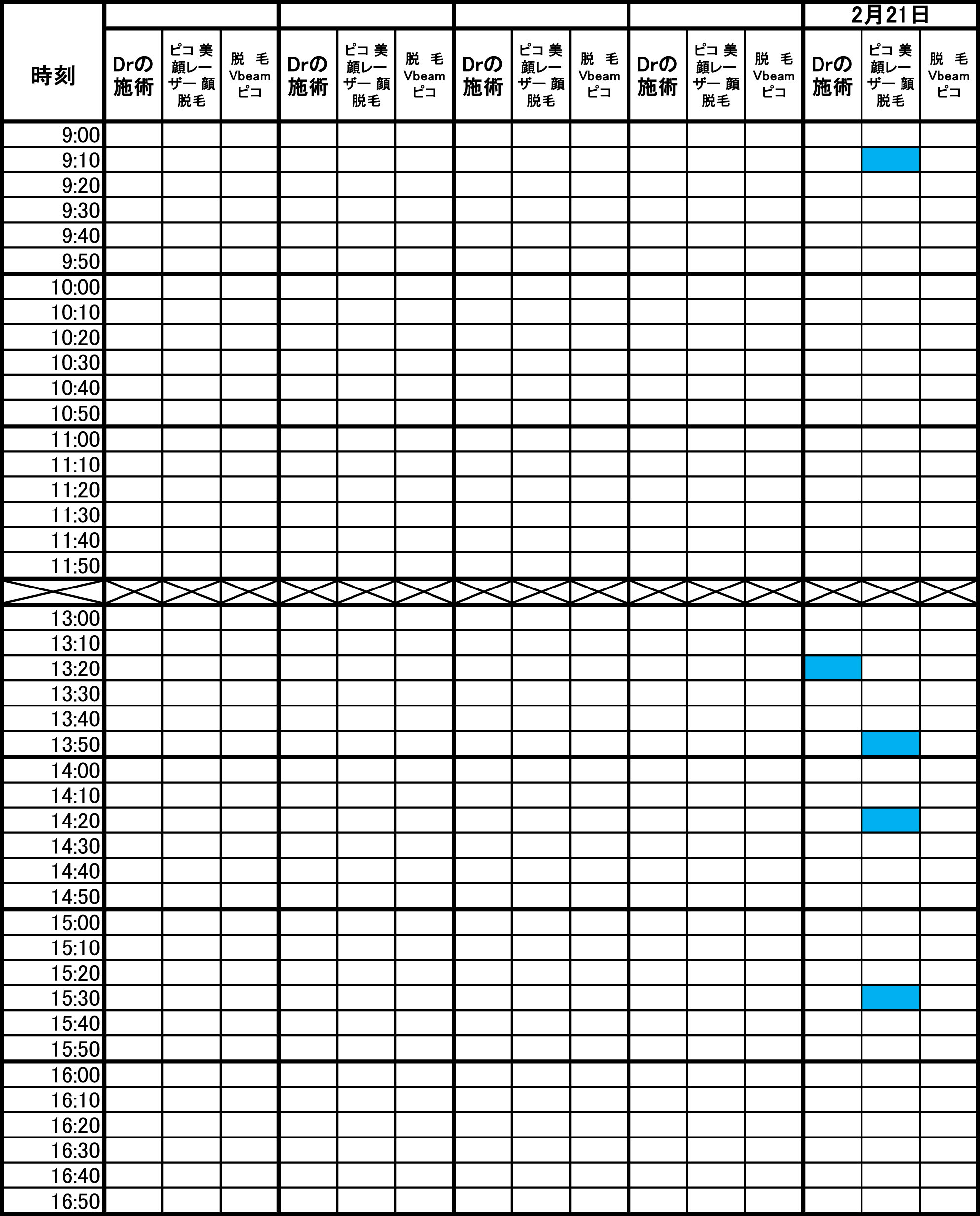 青色部分が空きです。 毎朝1回更新のため、すでに埋まっている場合があります。