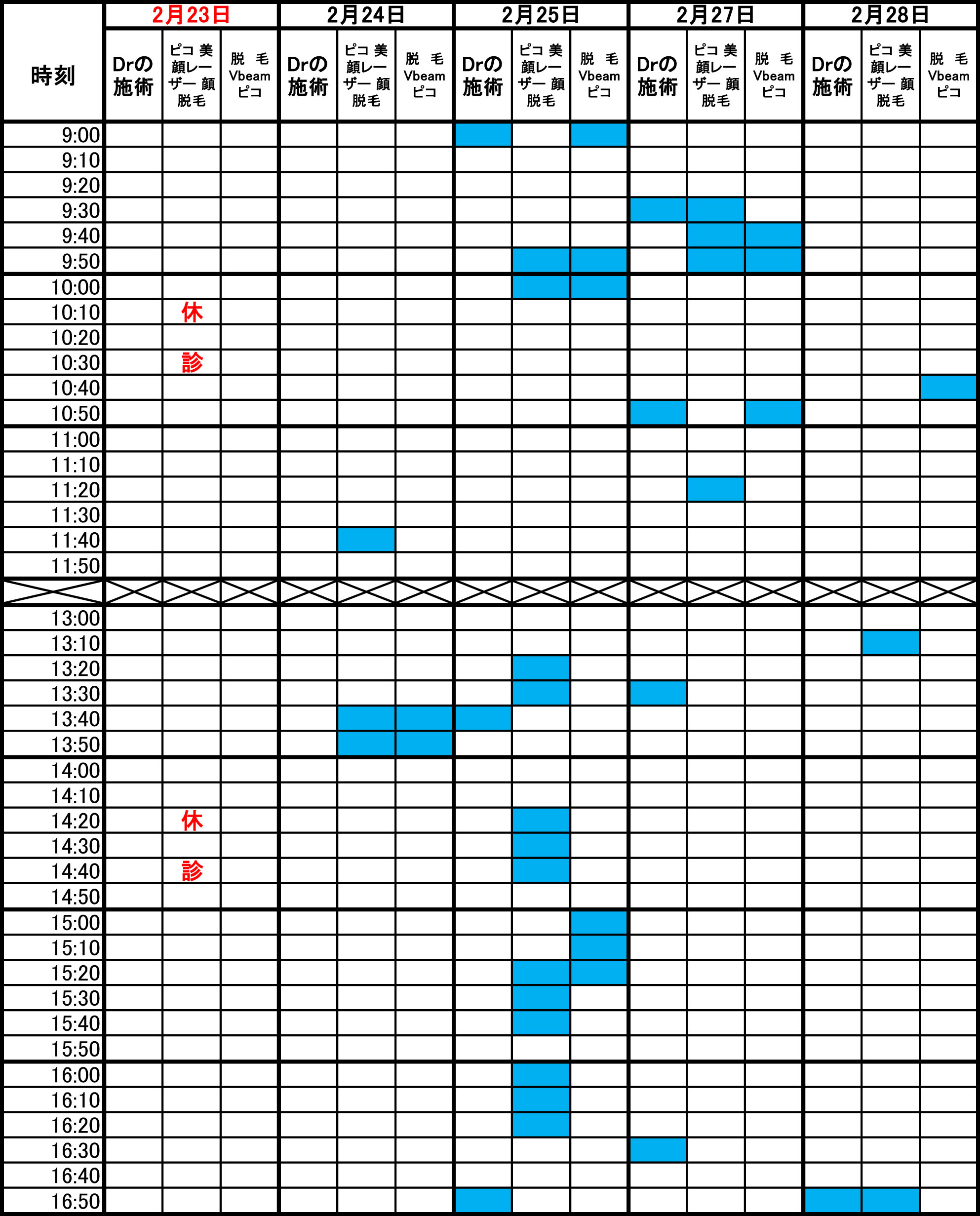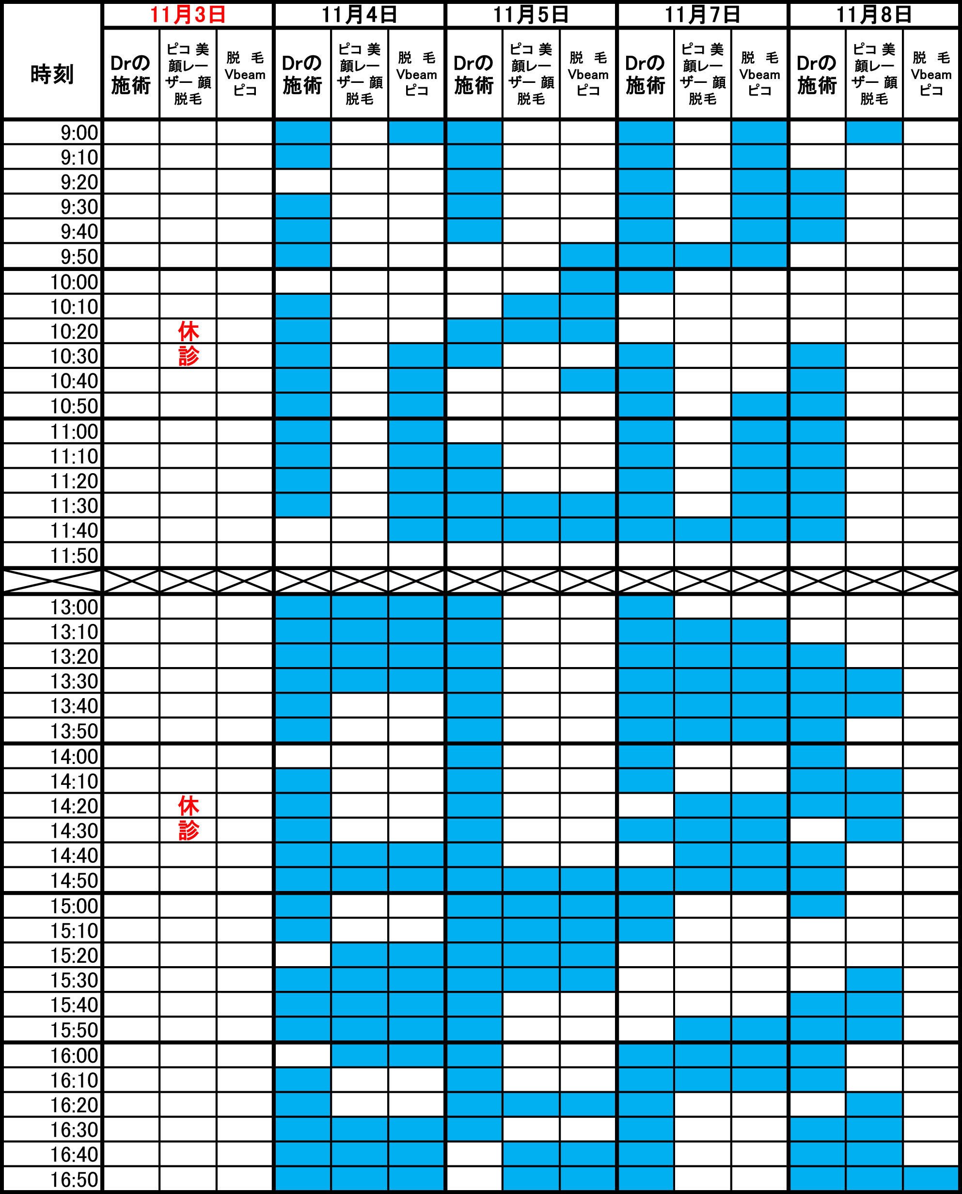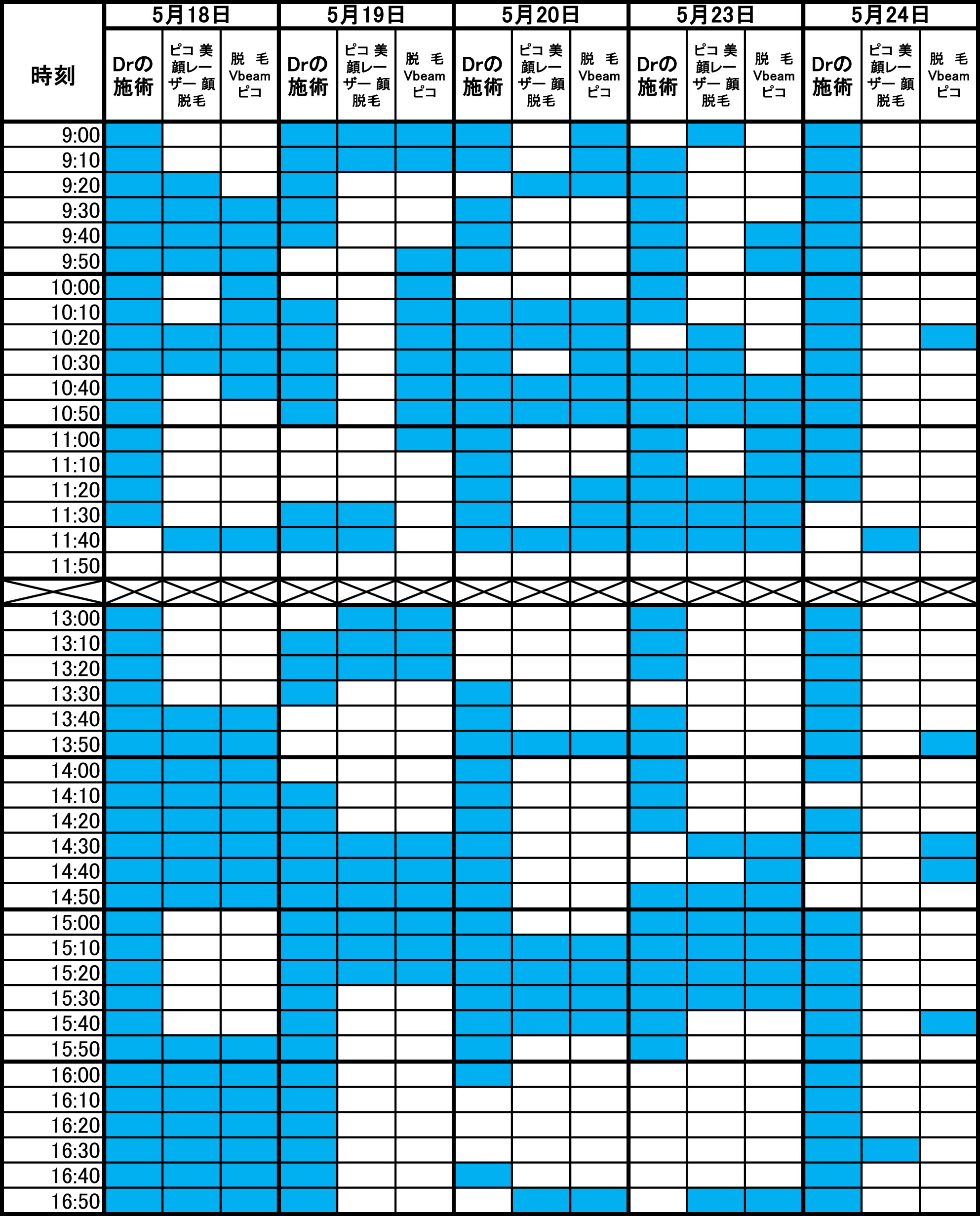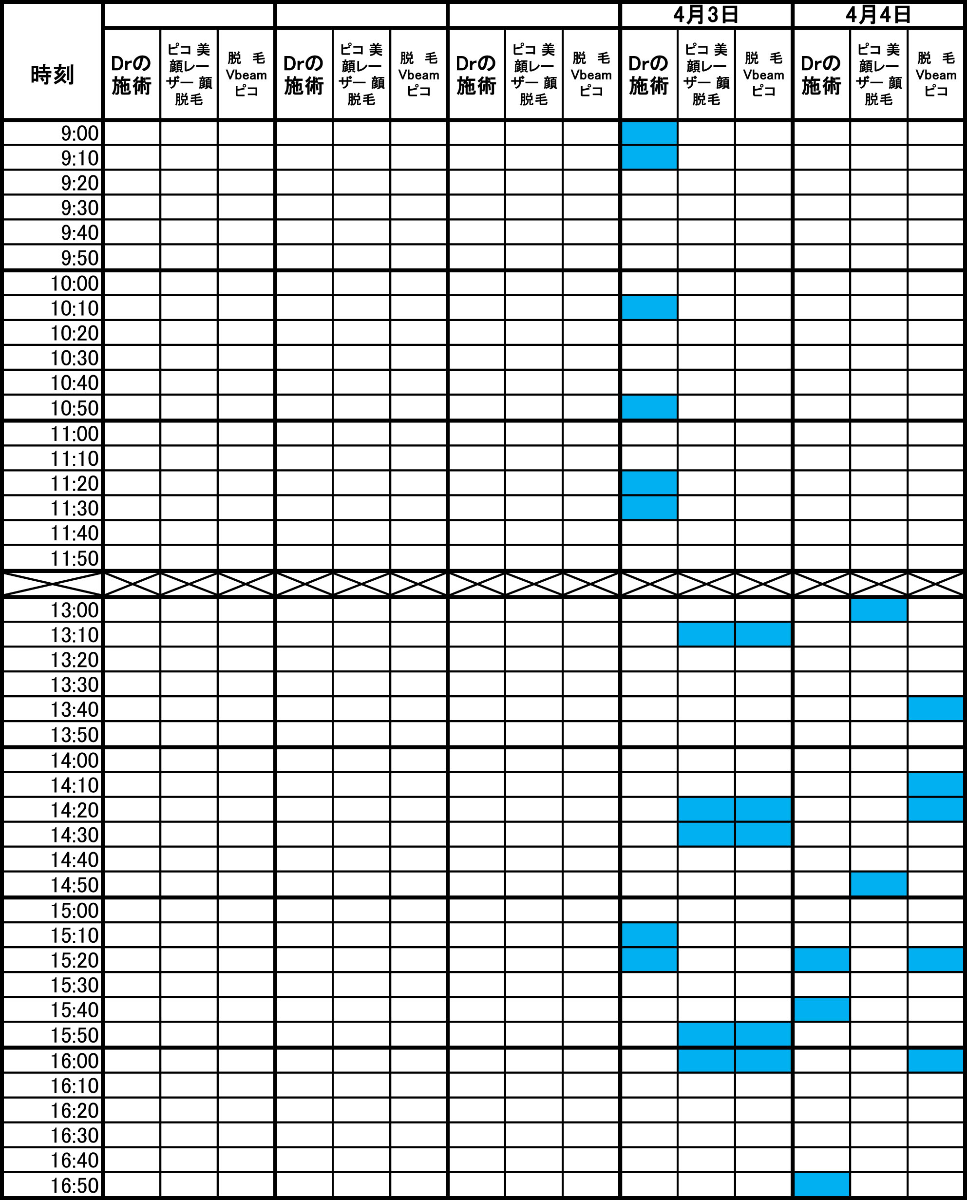 青色部分が空きです。 毎朝1回更新のため、すでに埋まっている場合があります。