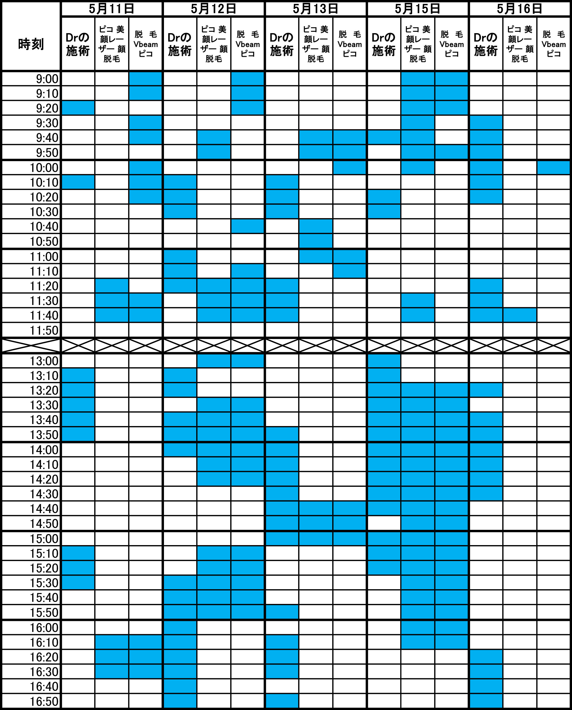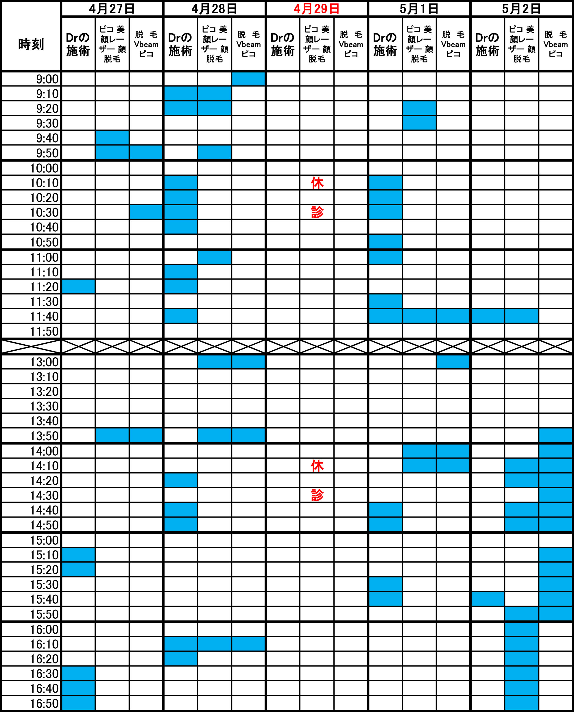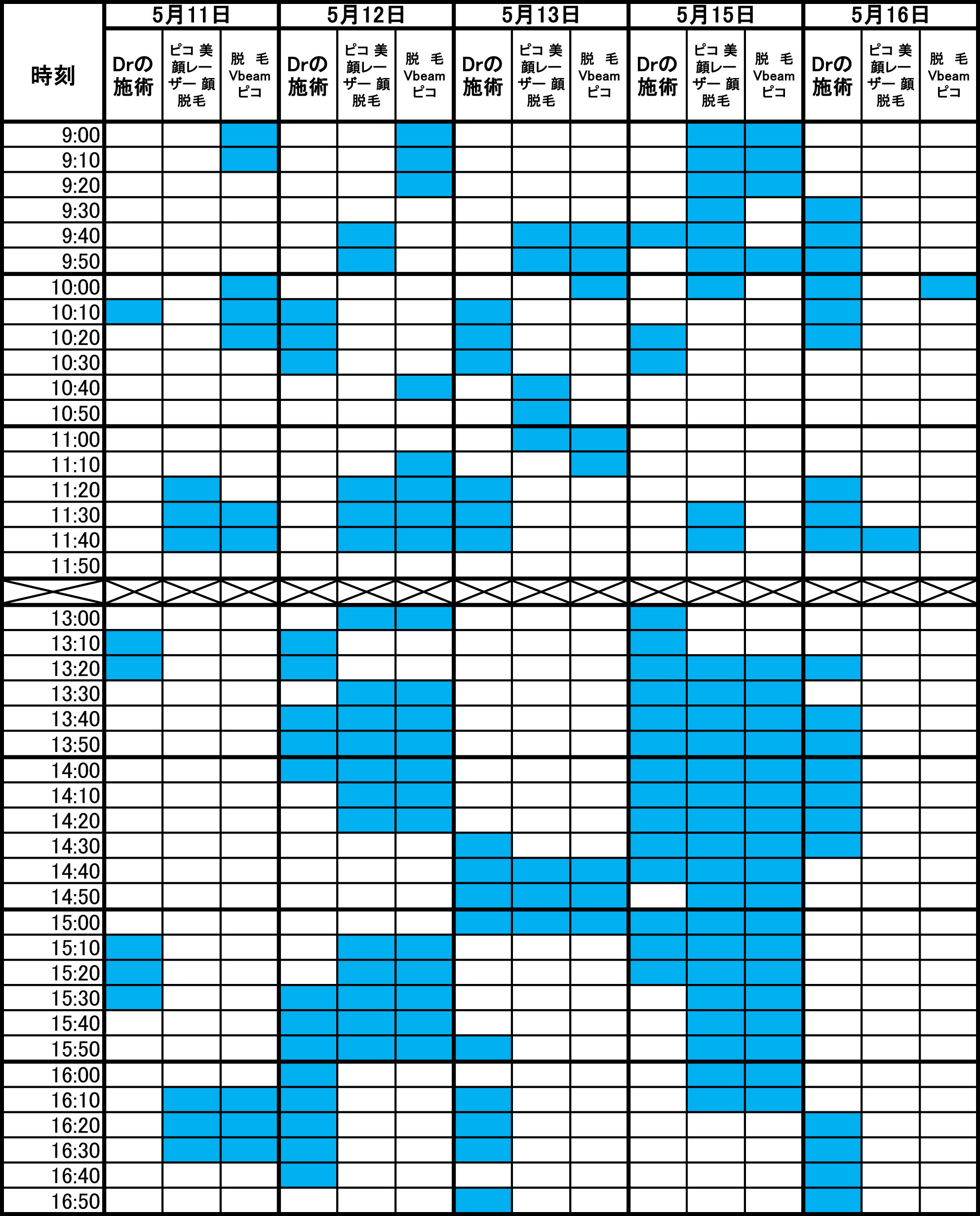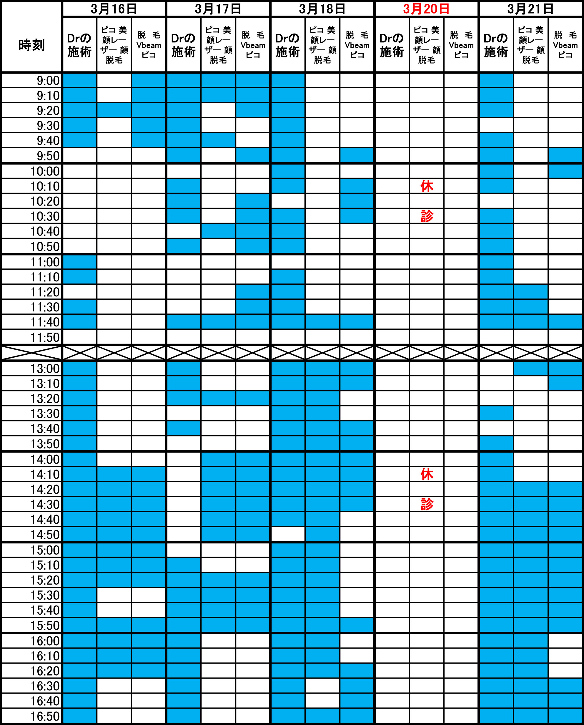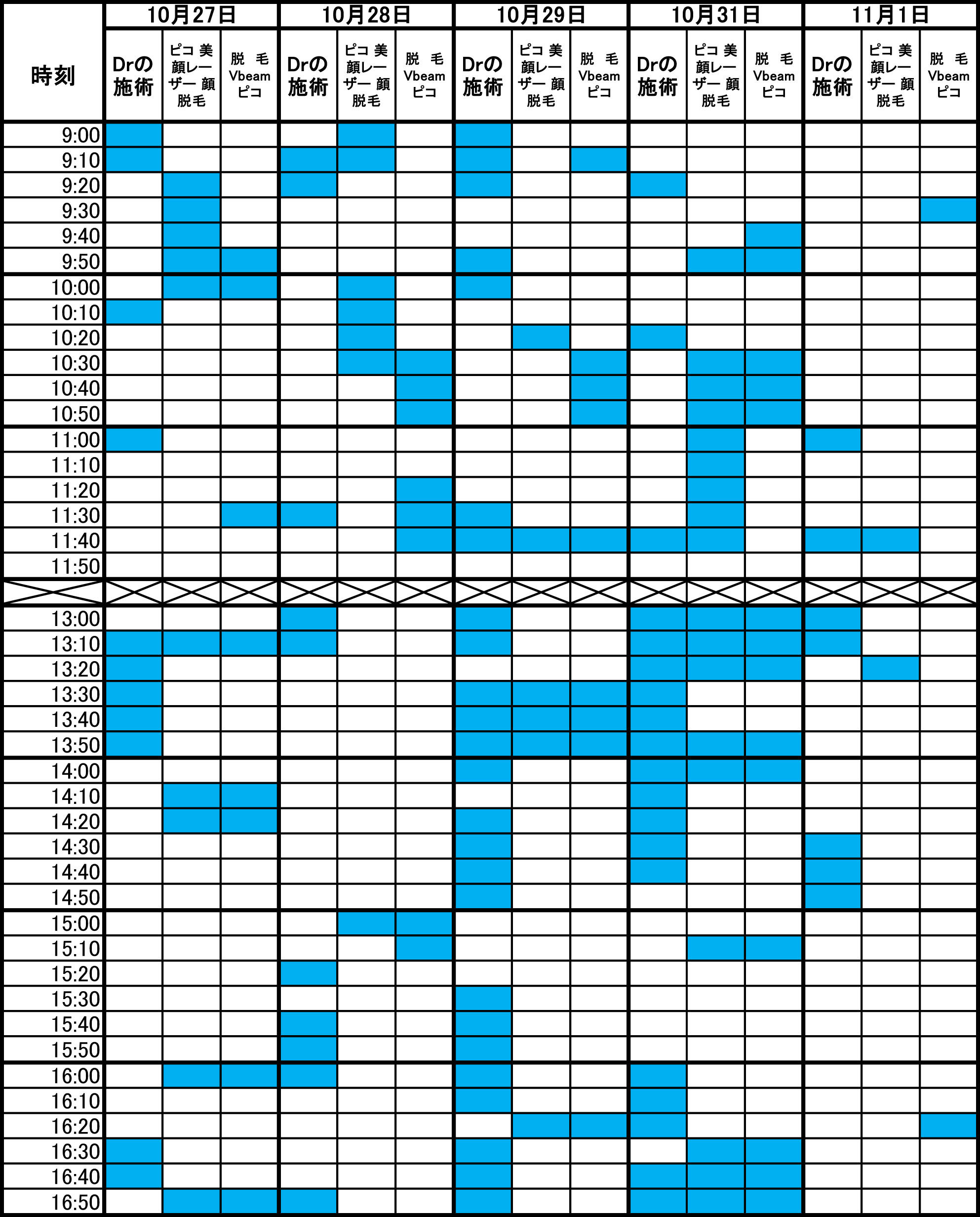 青色部分が空きです。 毎朝1回更新のため、すでに埋まっている場合があります。