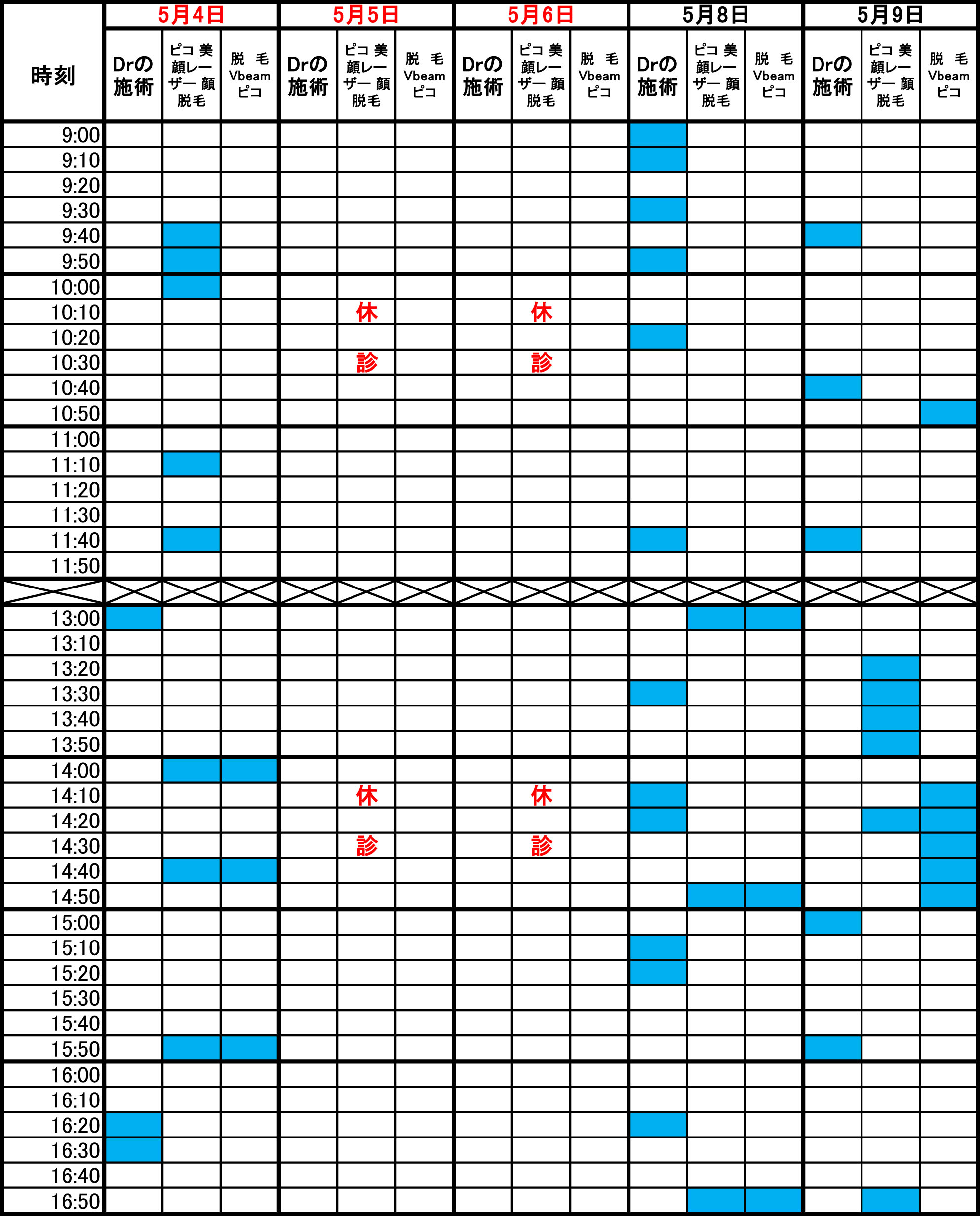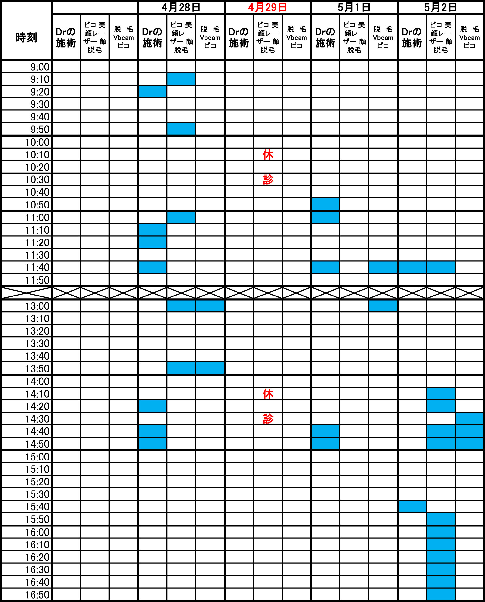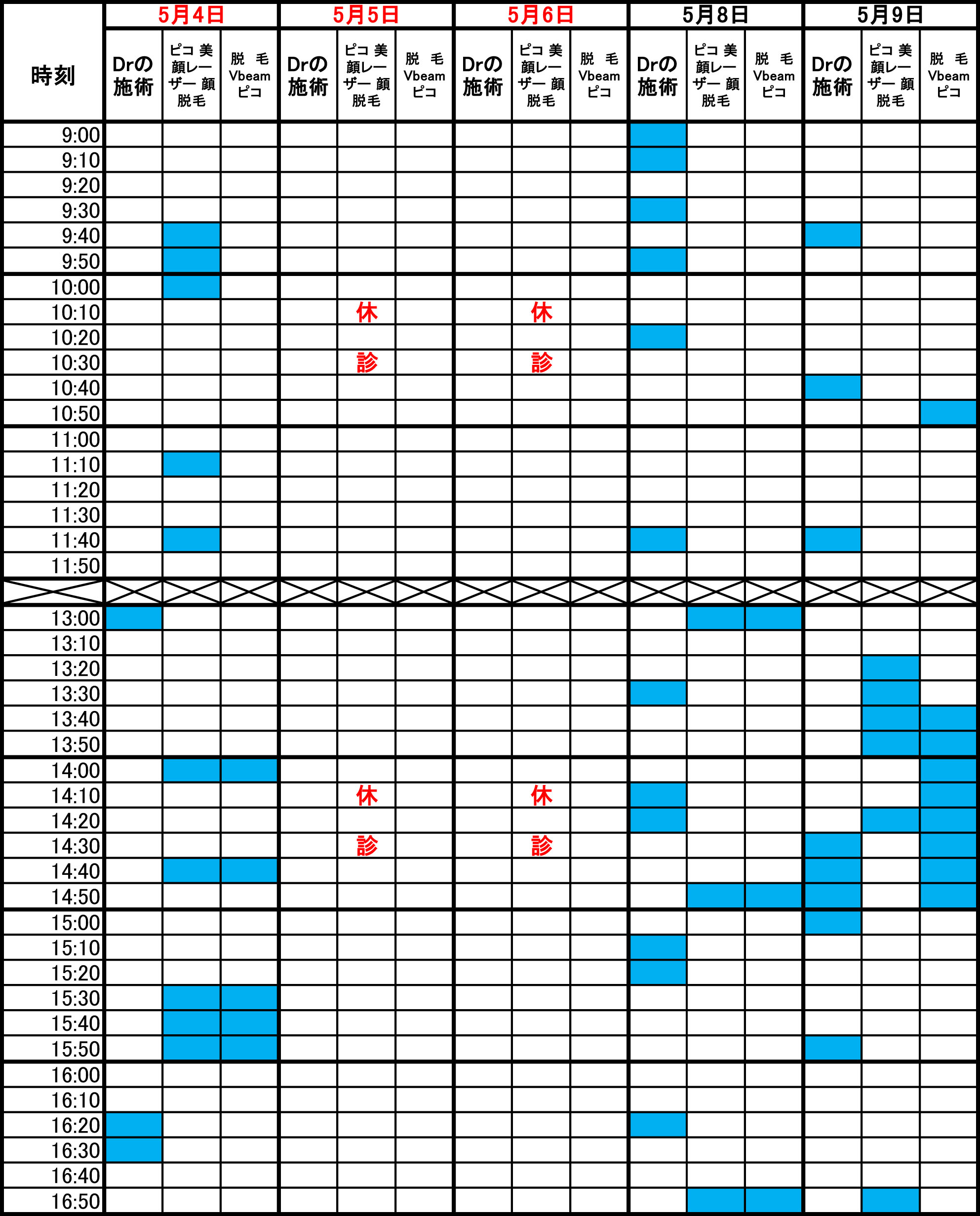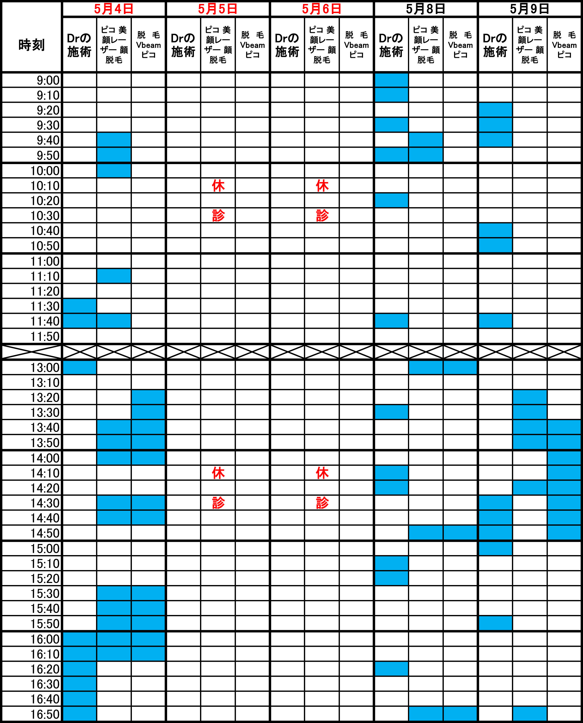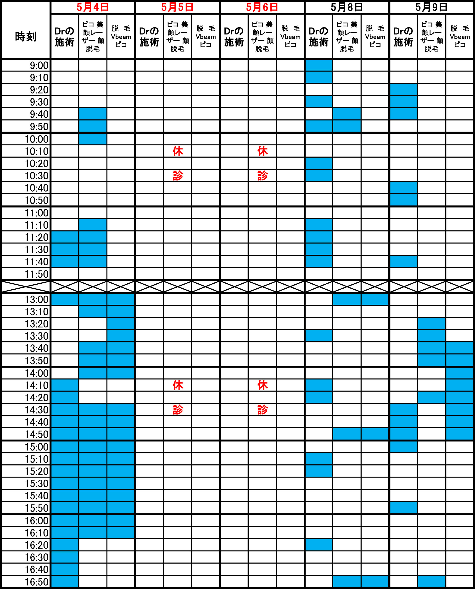青色部分が空きです。 毎朝1回更新のため、すでに埋まっている場合があります。
