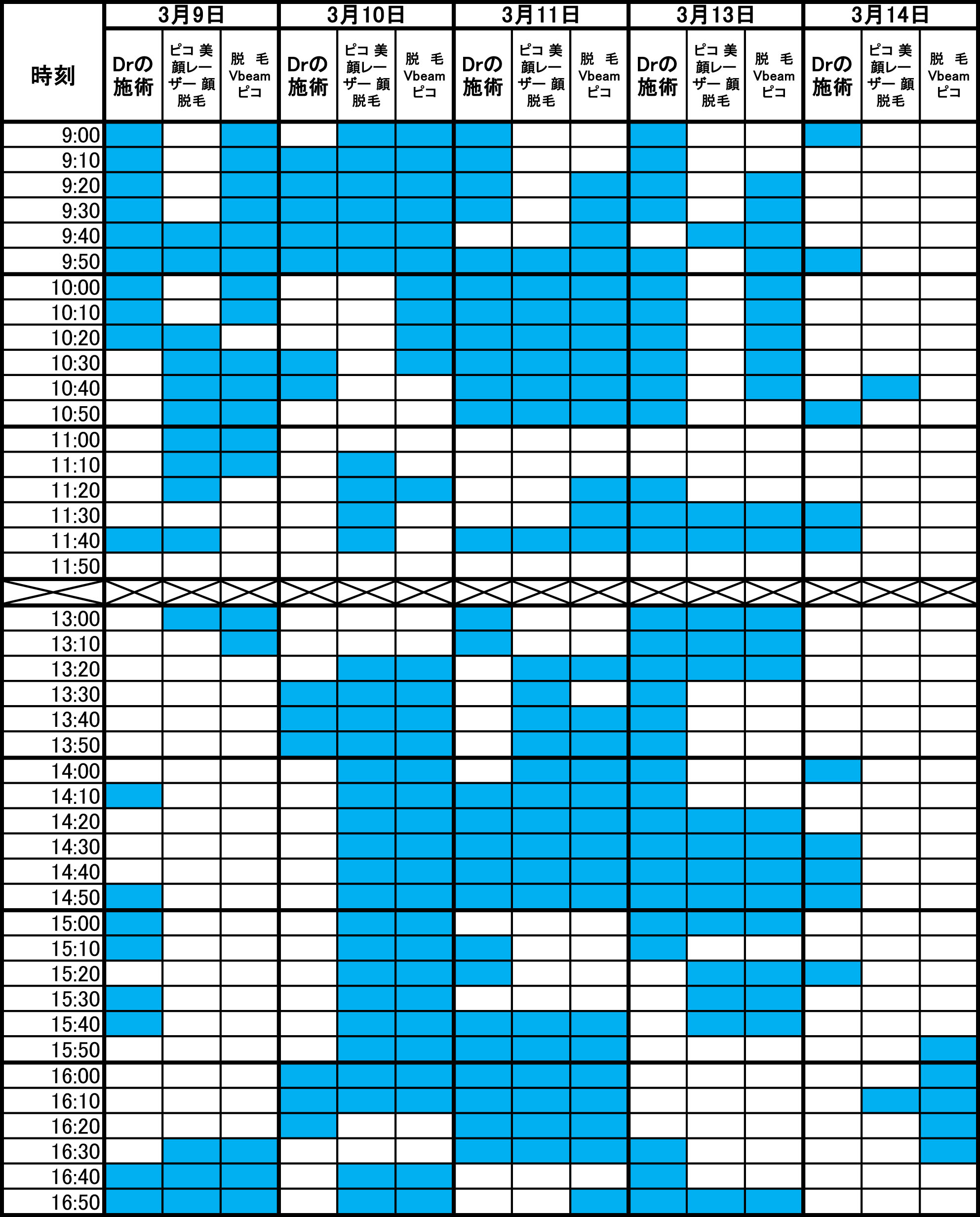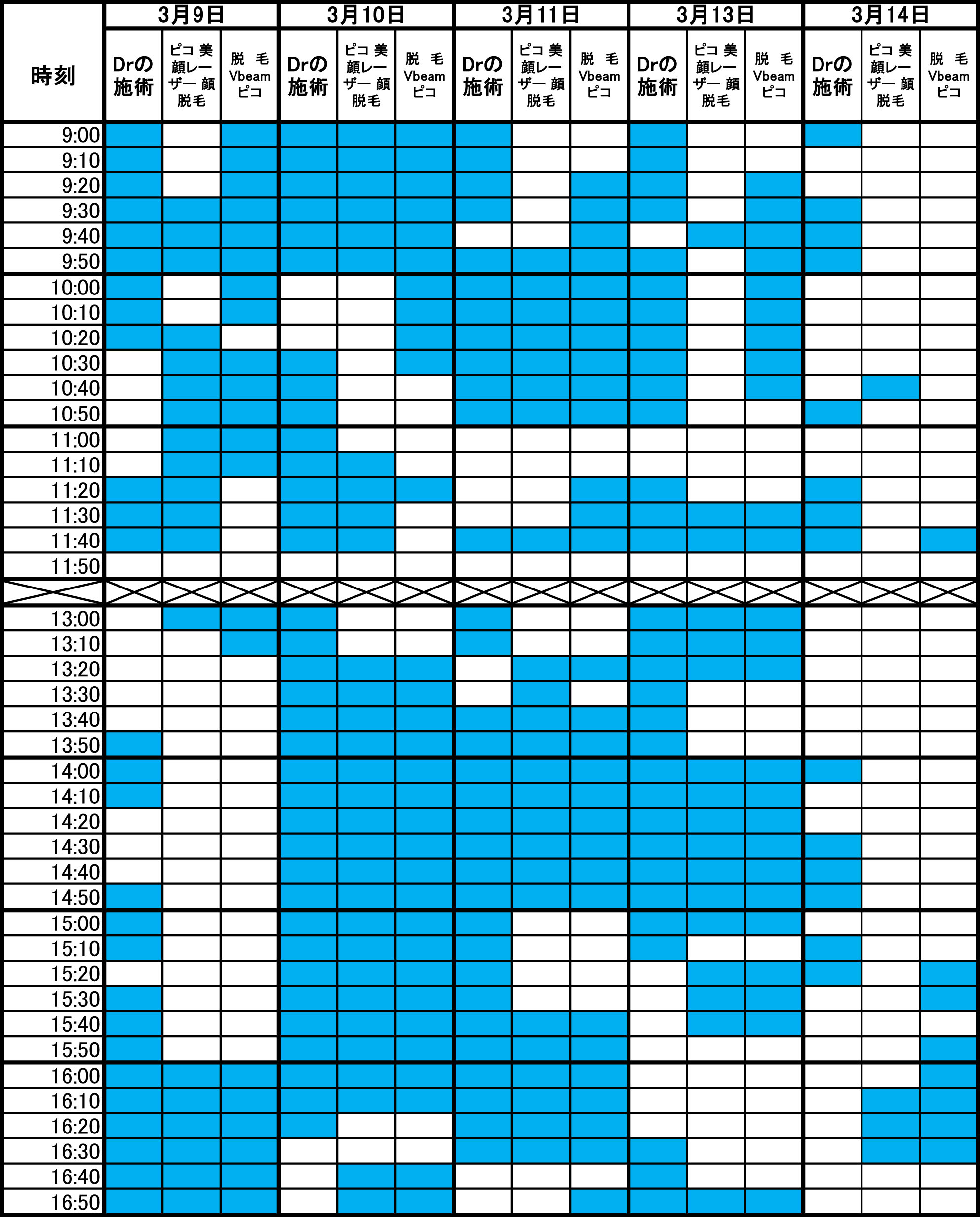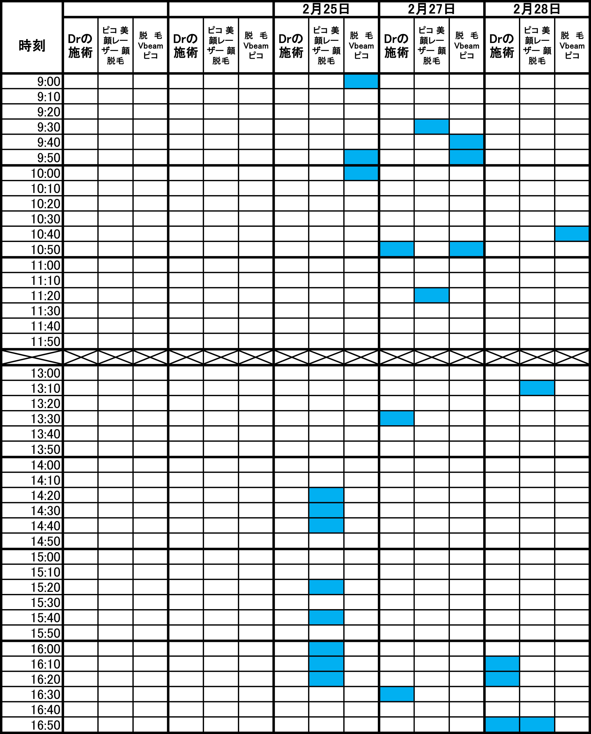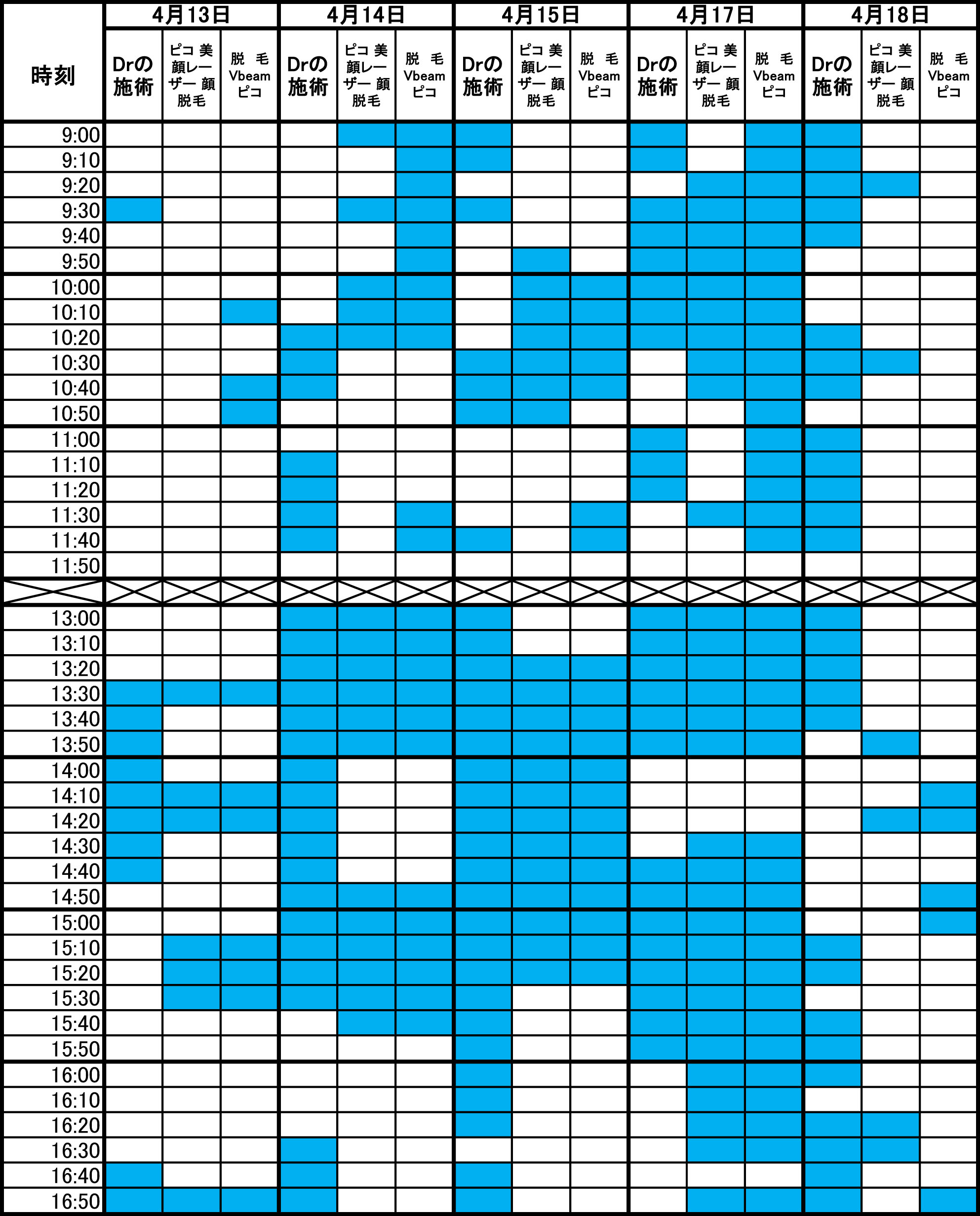 青色部分が空きです。 毎朝1回更新のため、すでに埋まっている場合があります。
