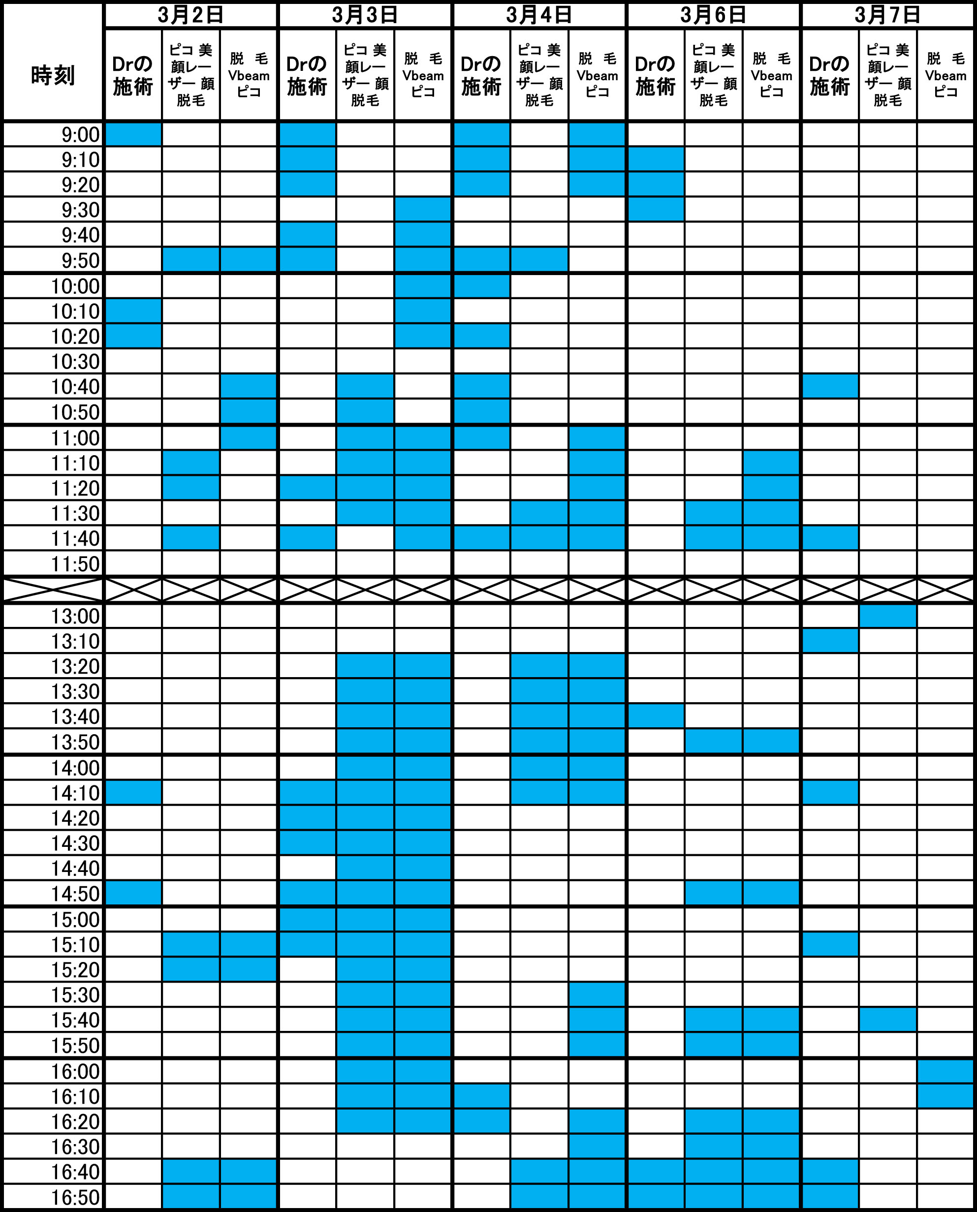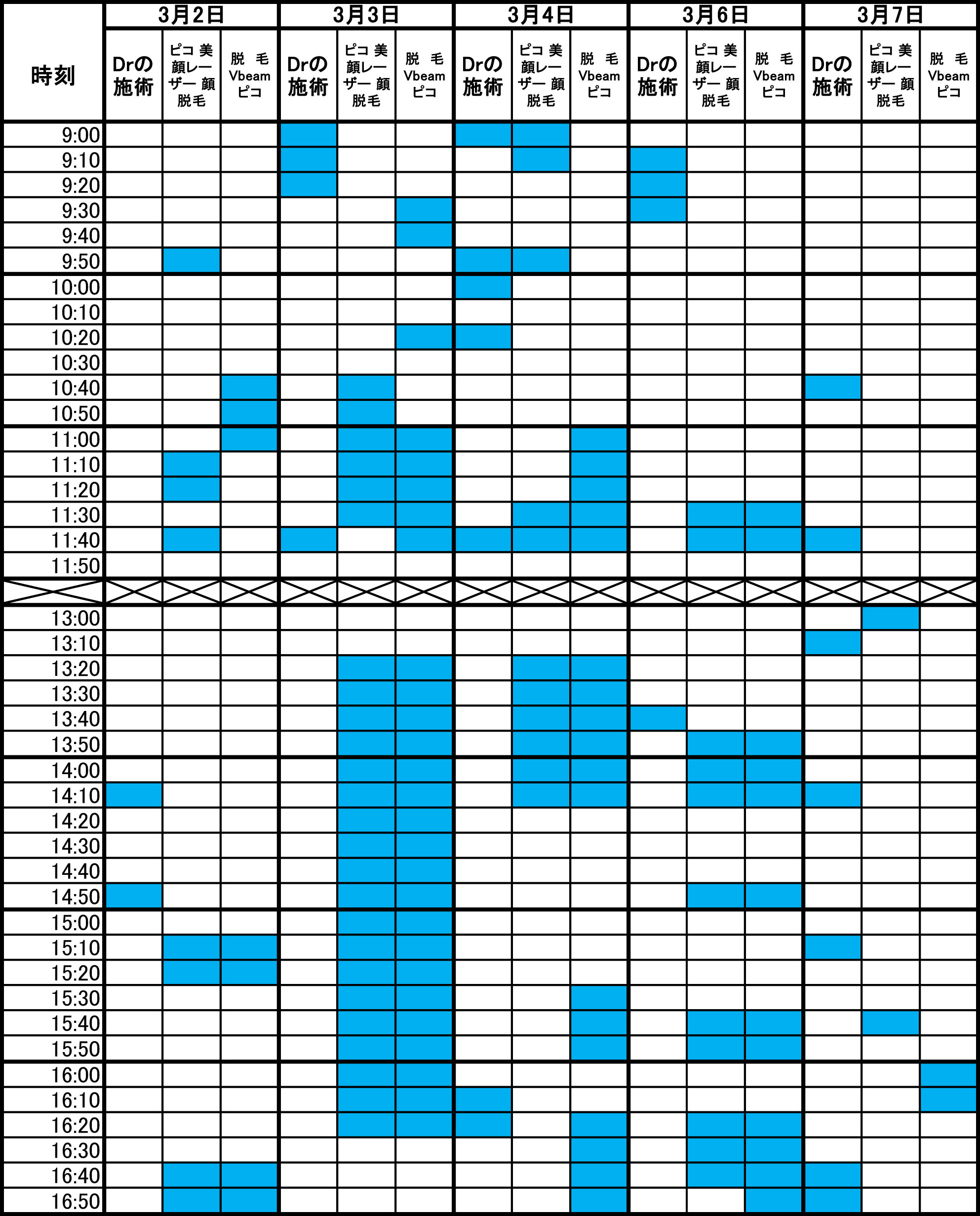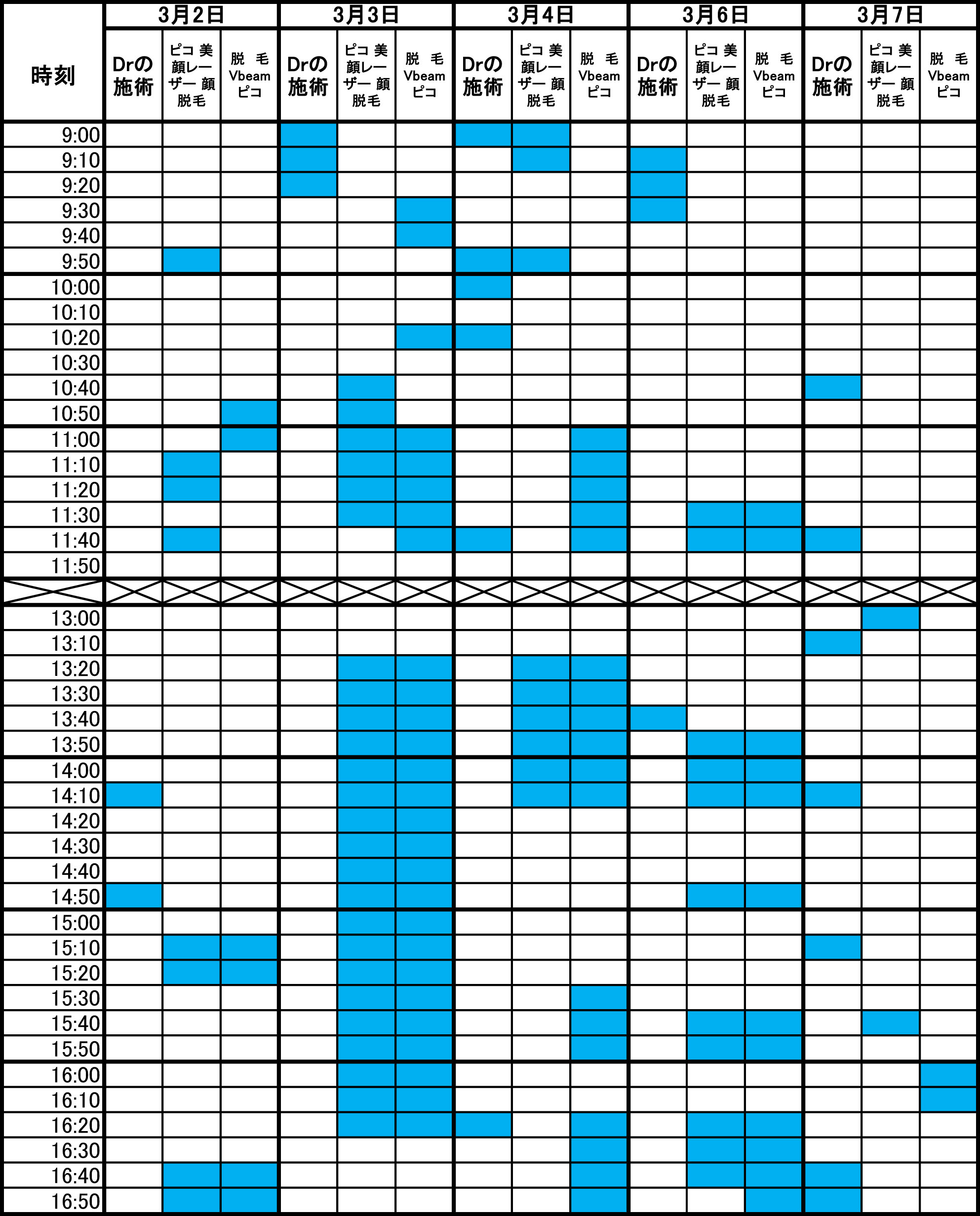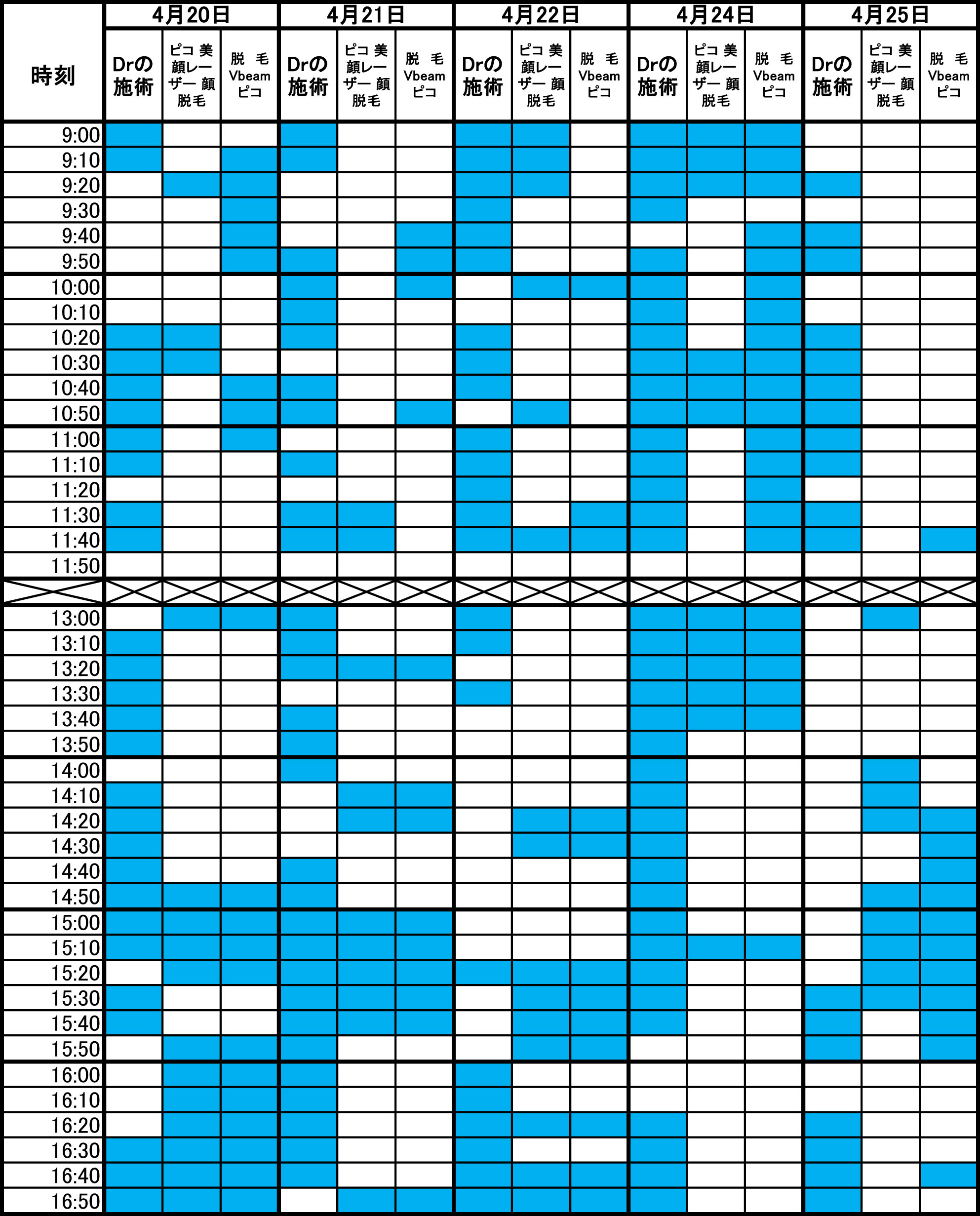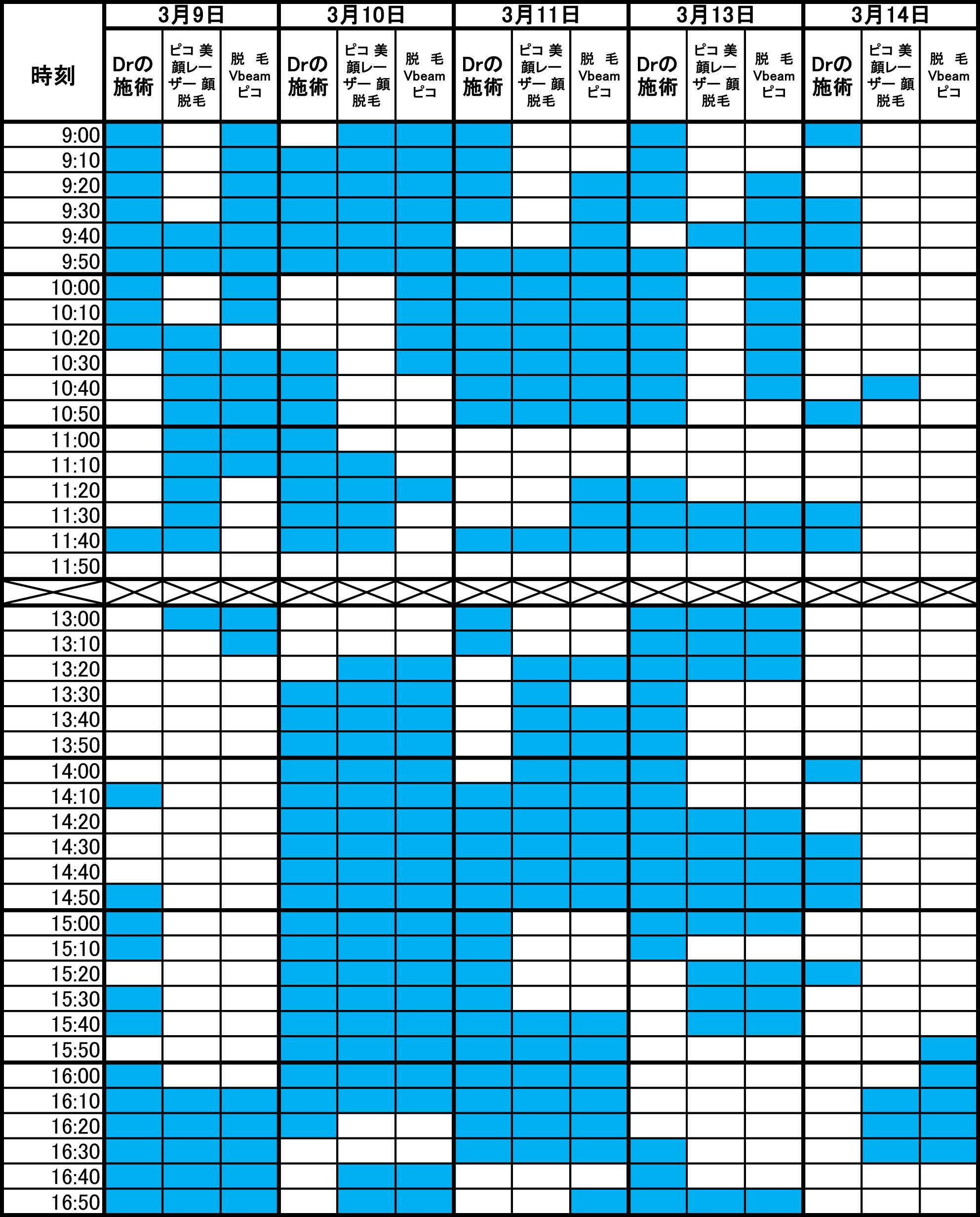 青色部分が空きです。 毎朝1回更新のため、すでに埋まっている場合があります。