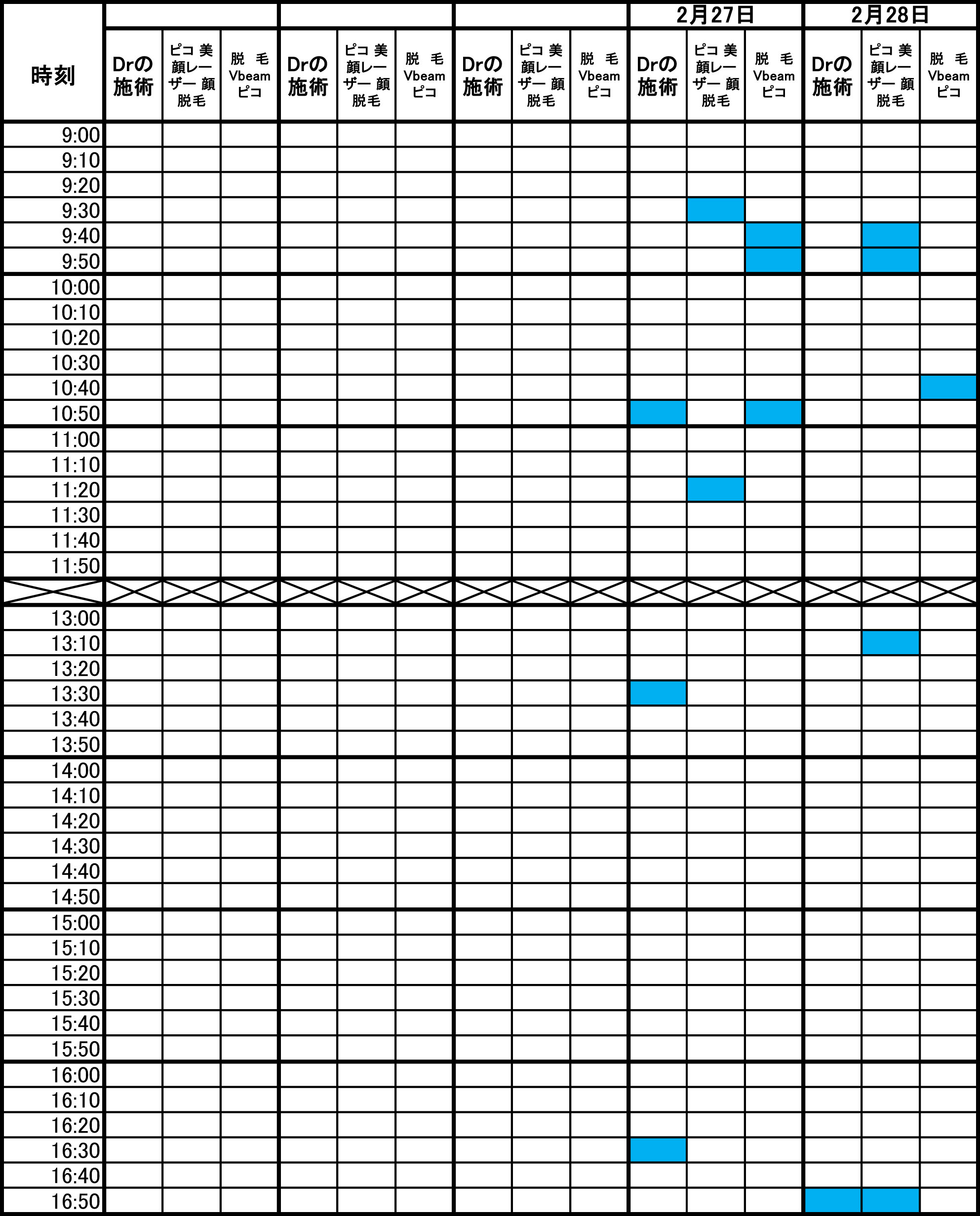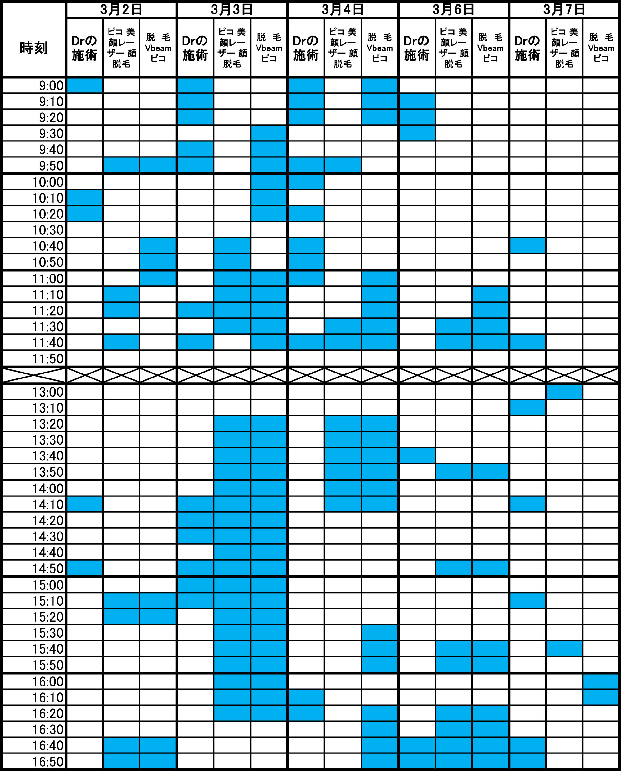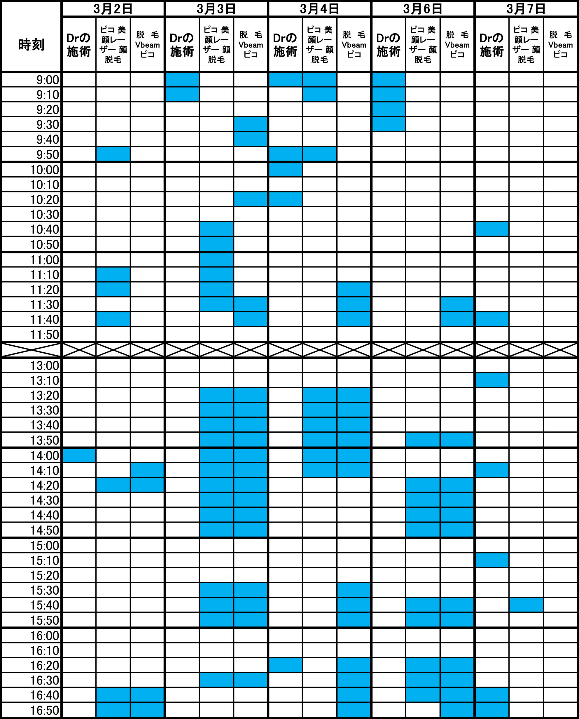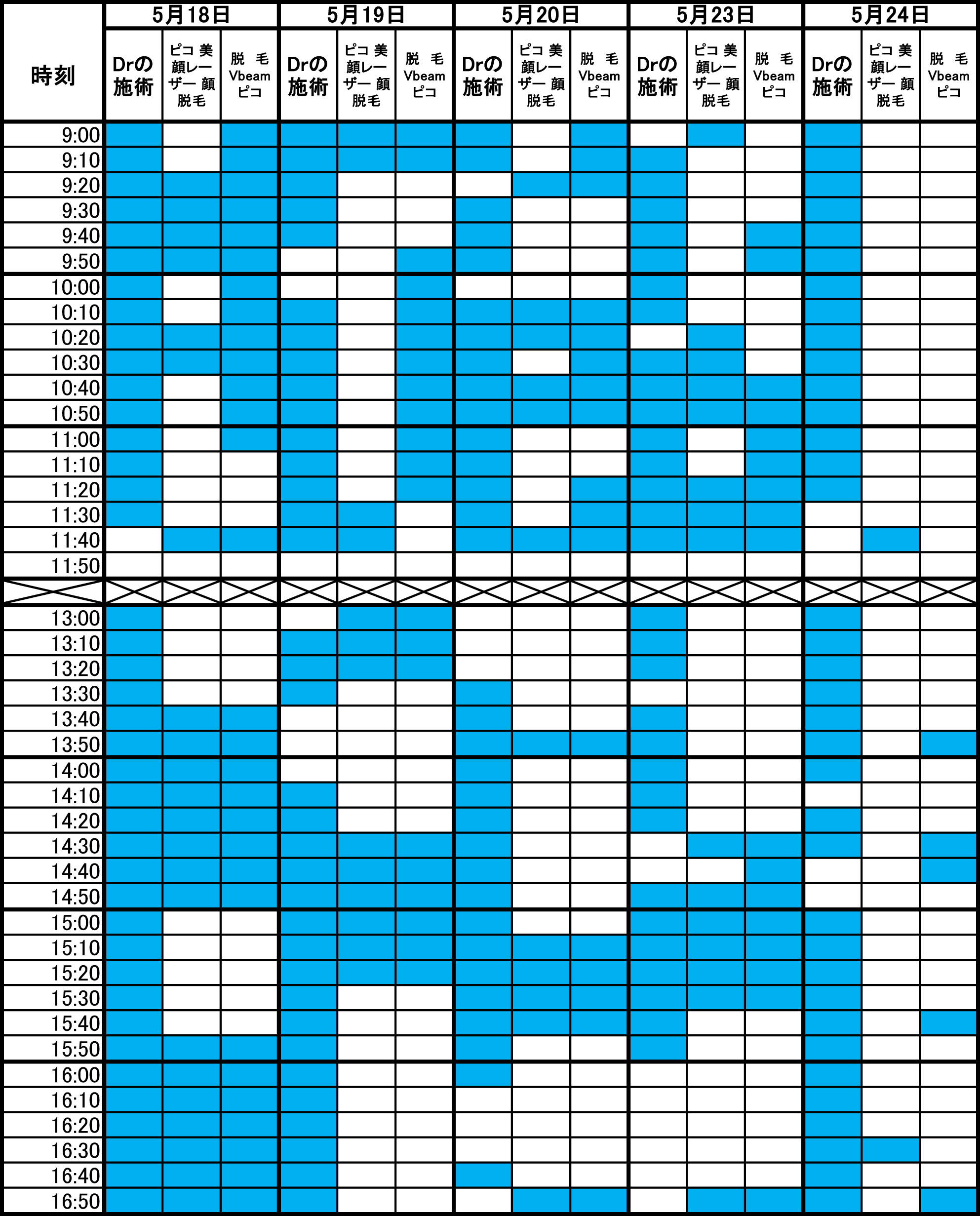 青色部分が空きです。 毎朝1回更新のため、すでに埋まっている場合があります。