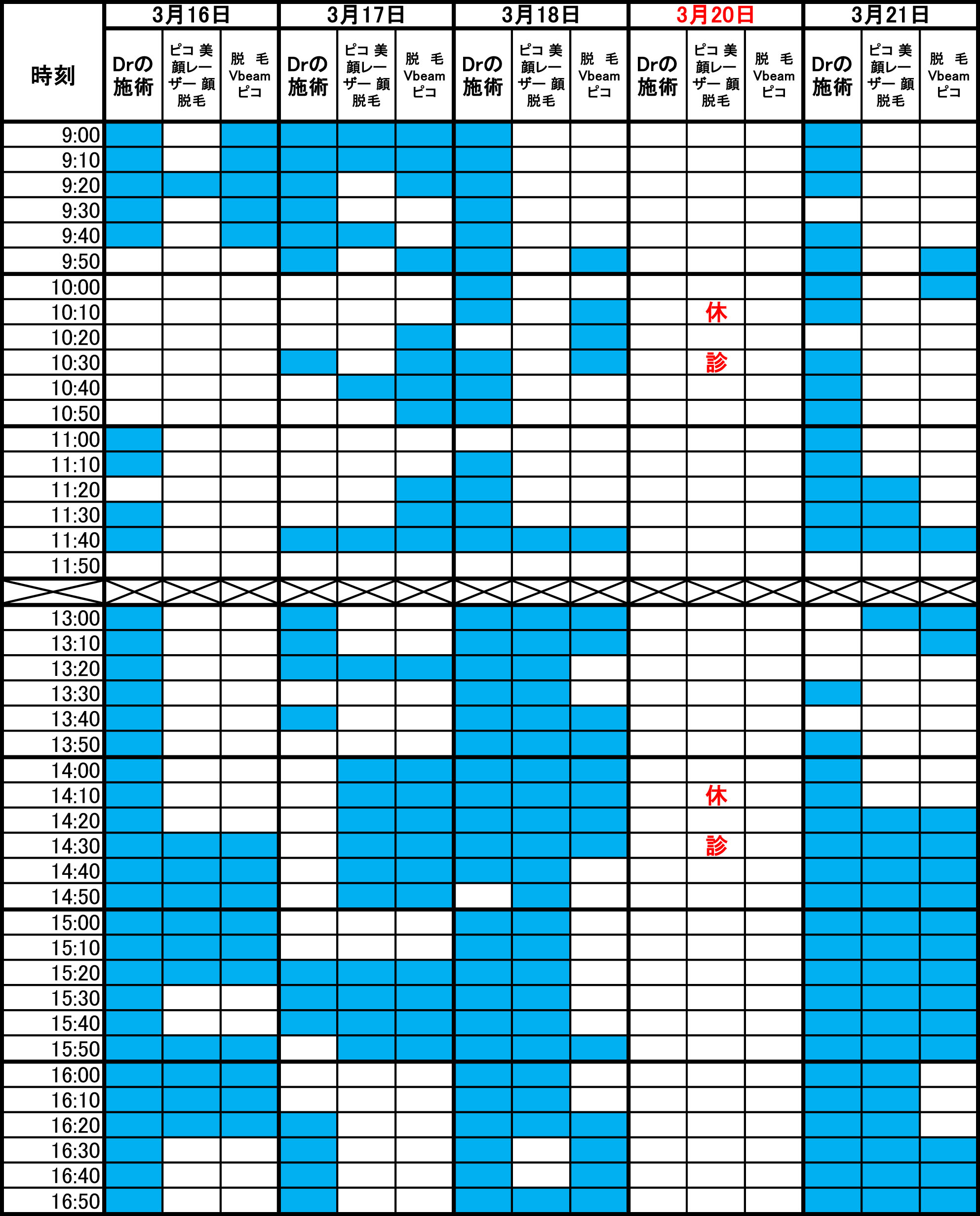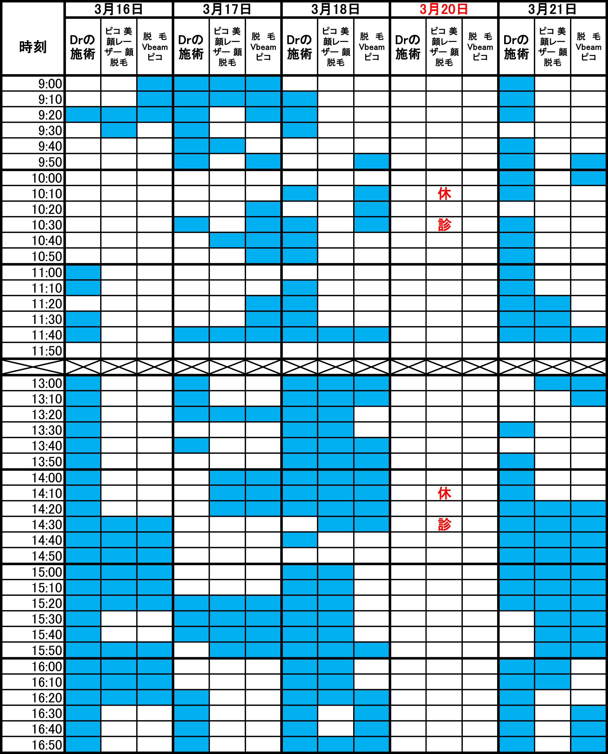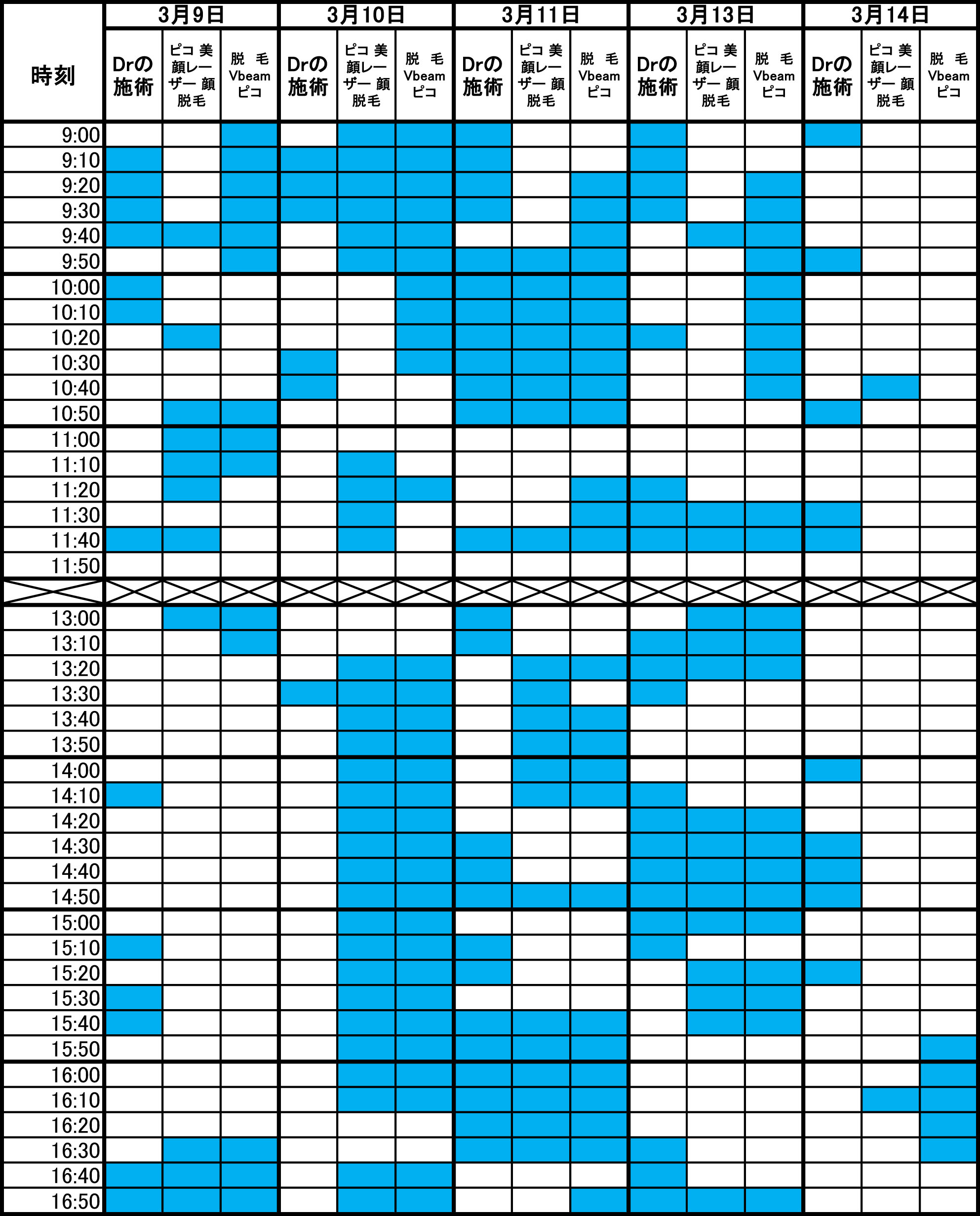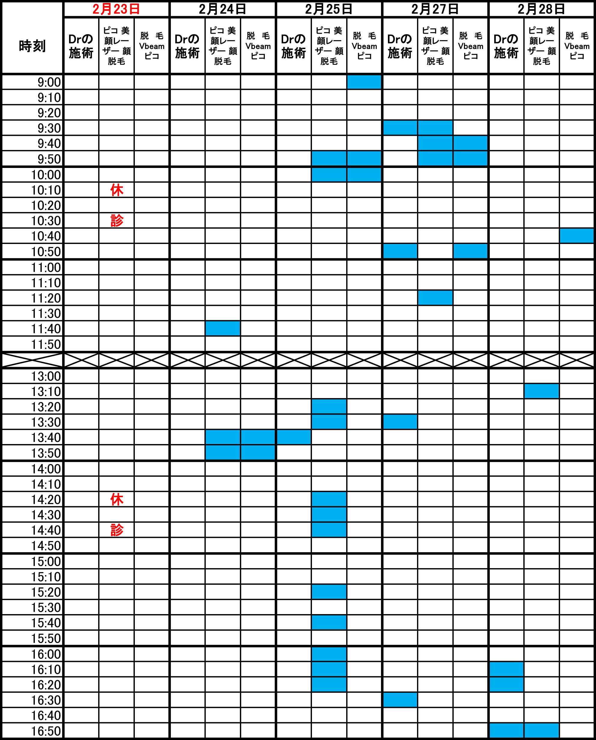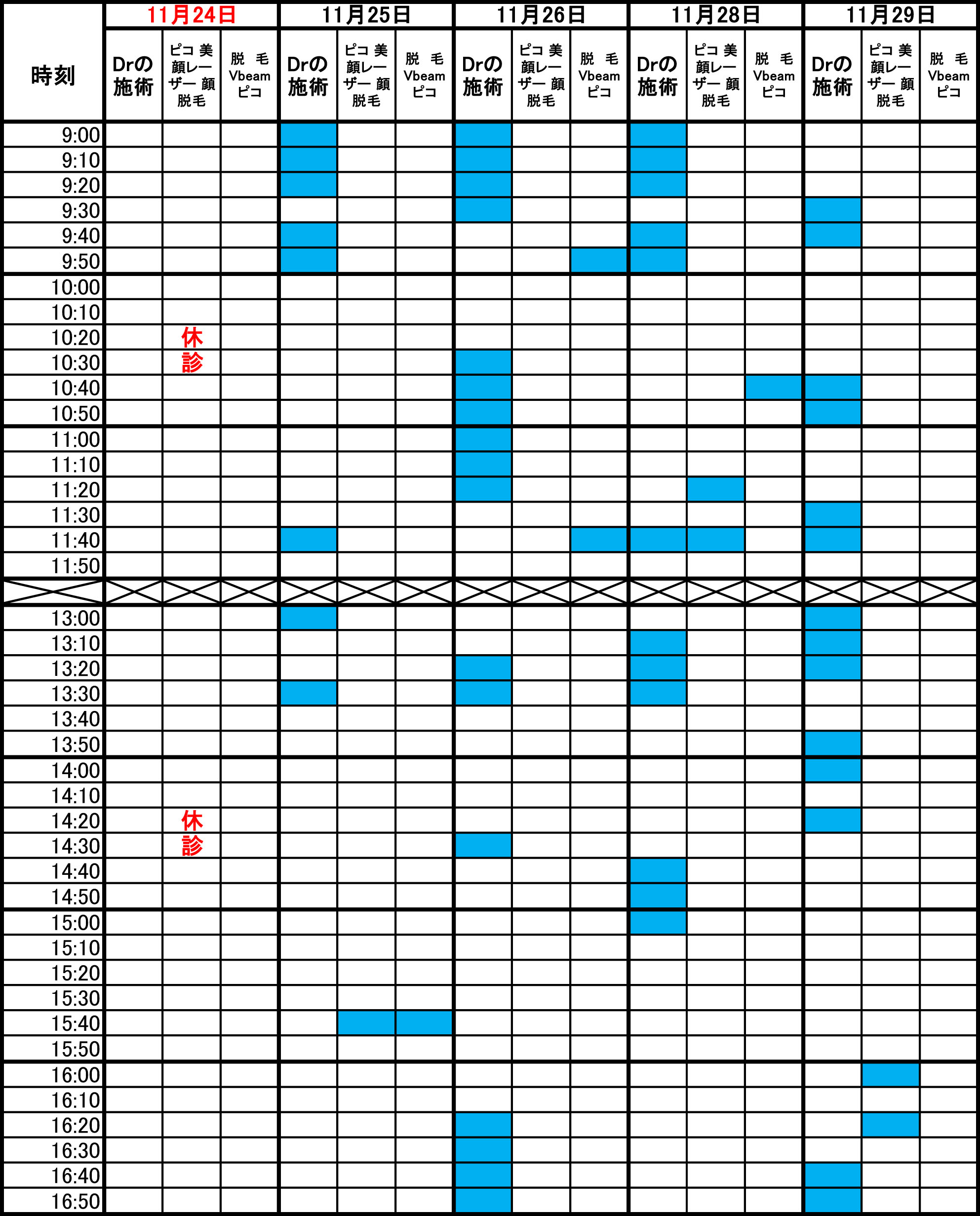 青色部分が空きです。 毎朝1回更新のため、すでに埋まっている場合があります。