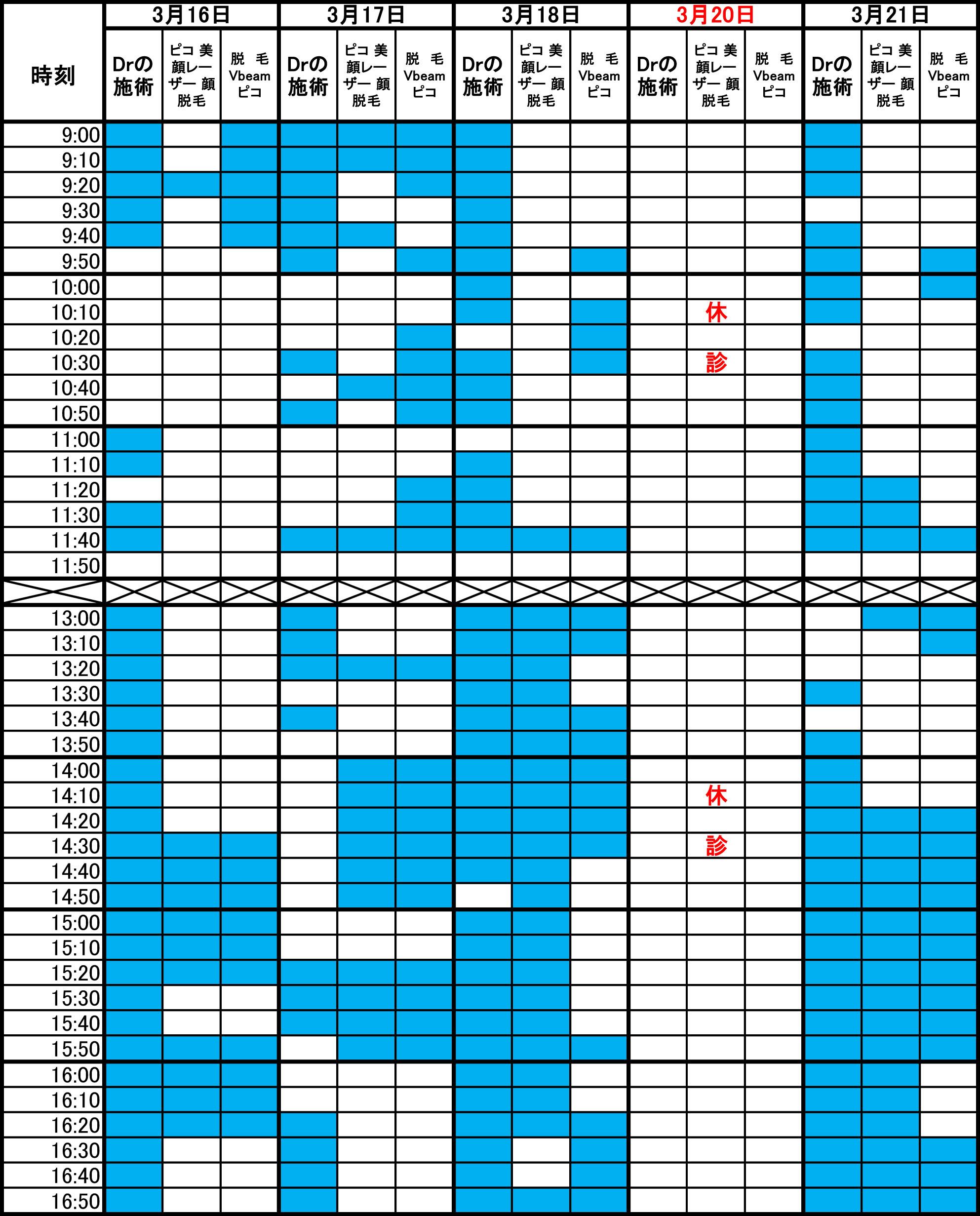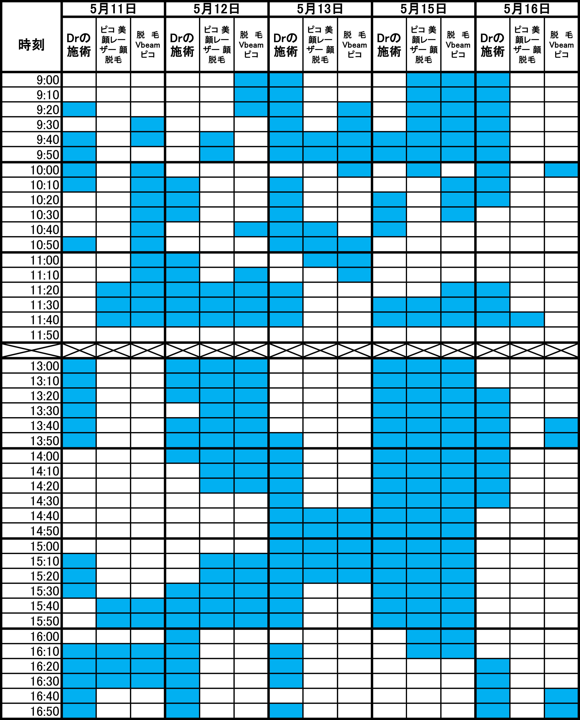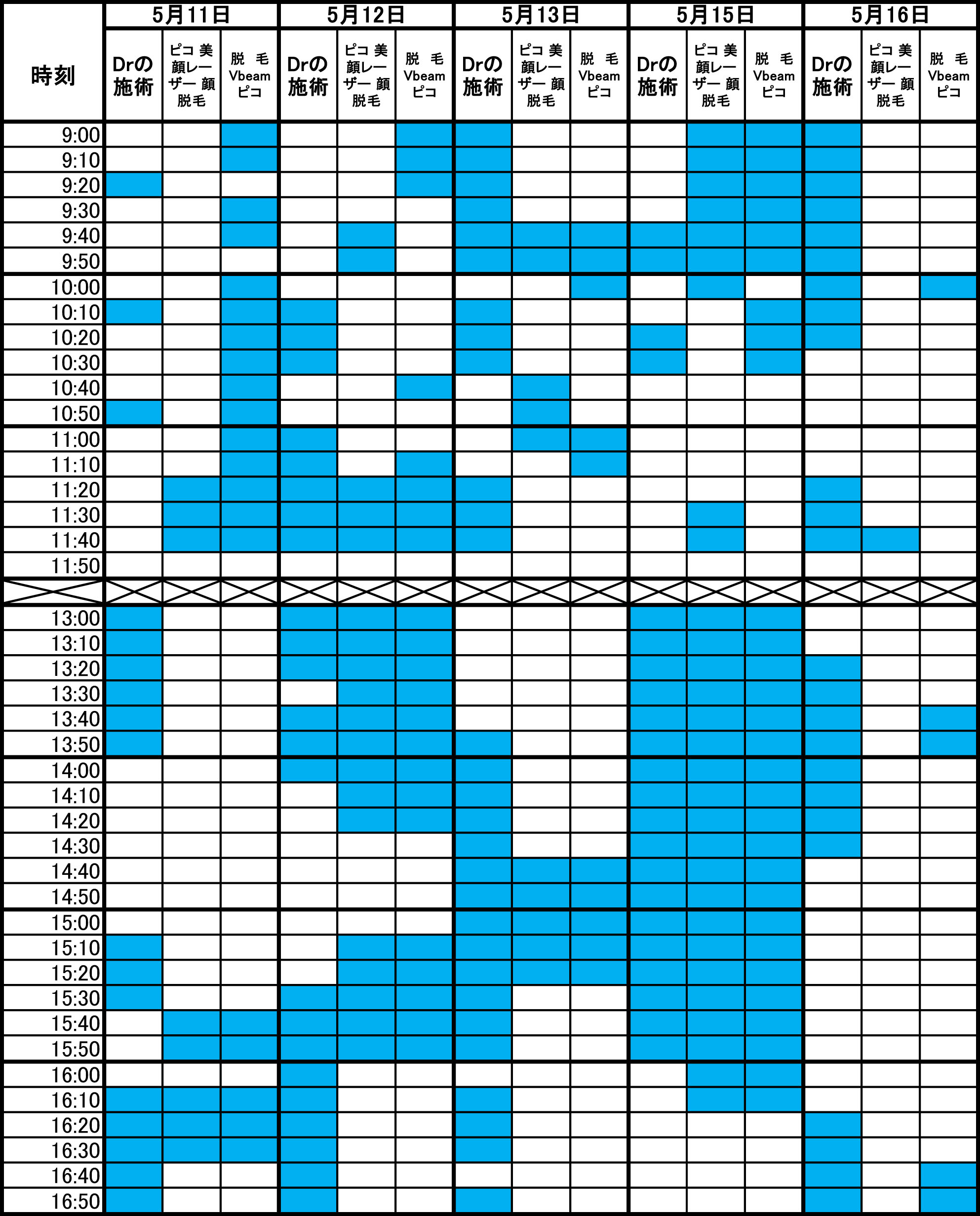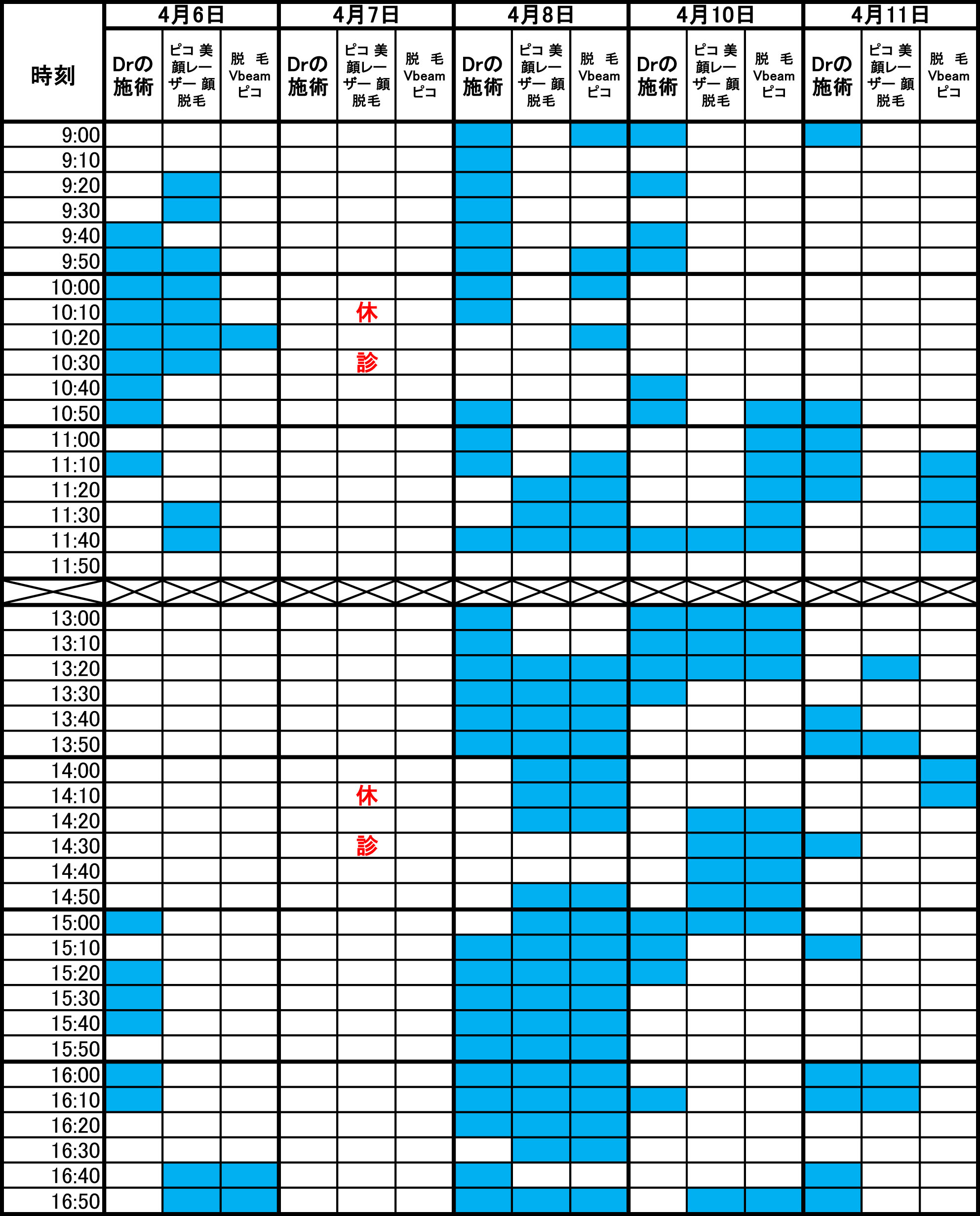 青色部分が空きです。 毎朝1回更新のため、すでに埋まっている場合があります。