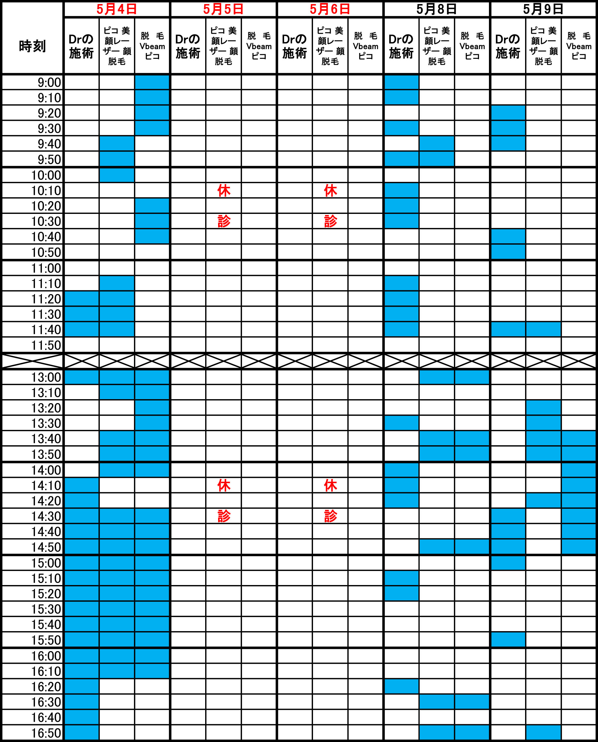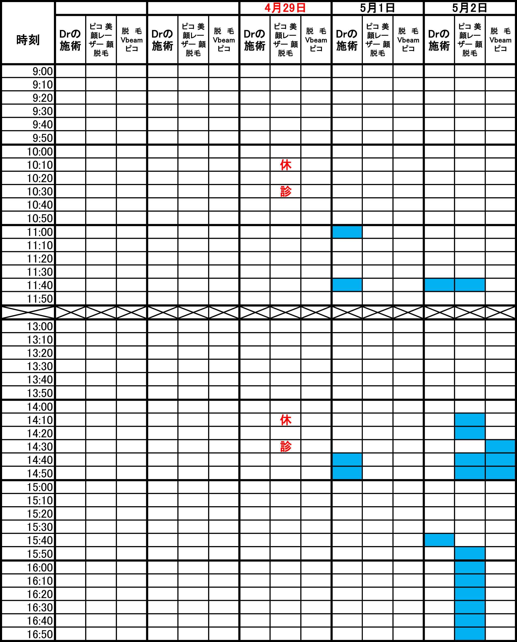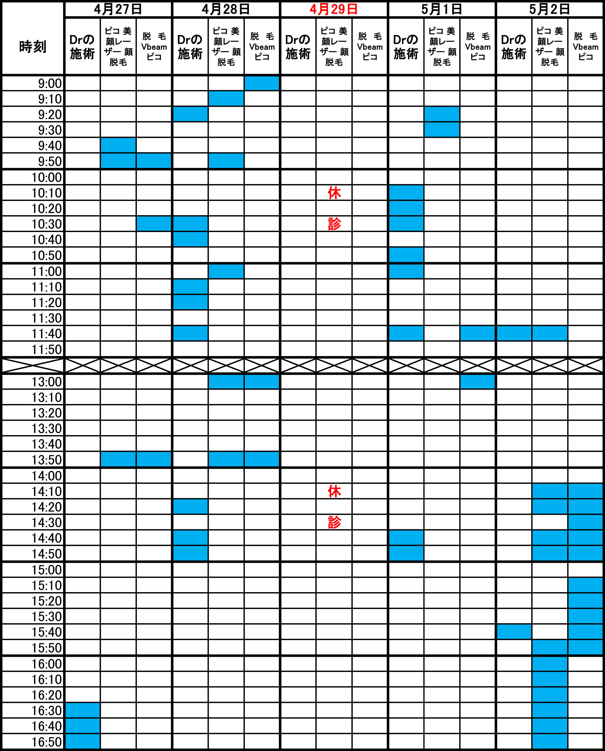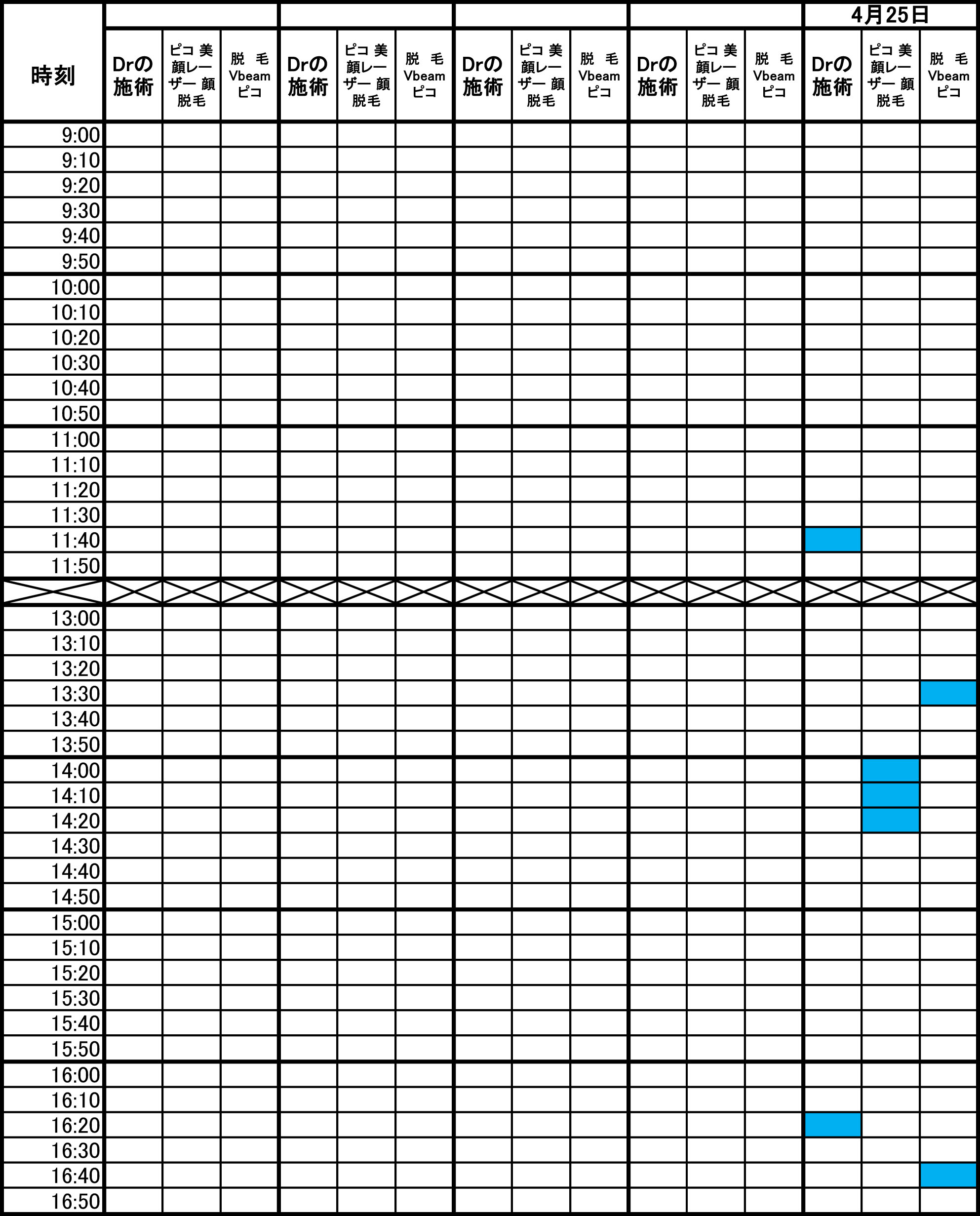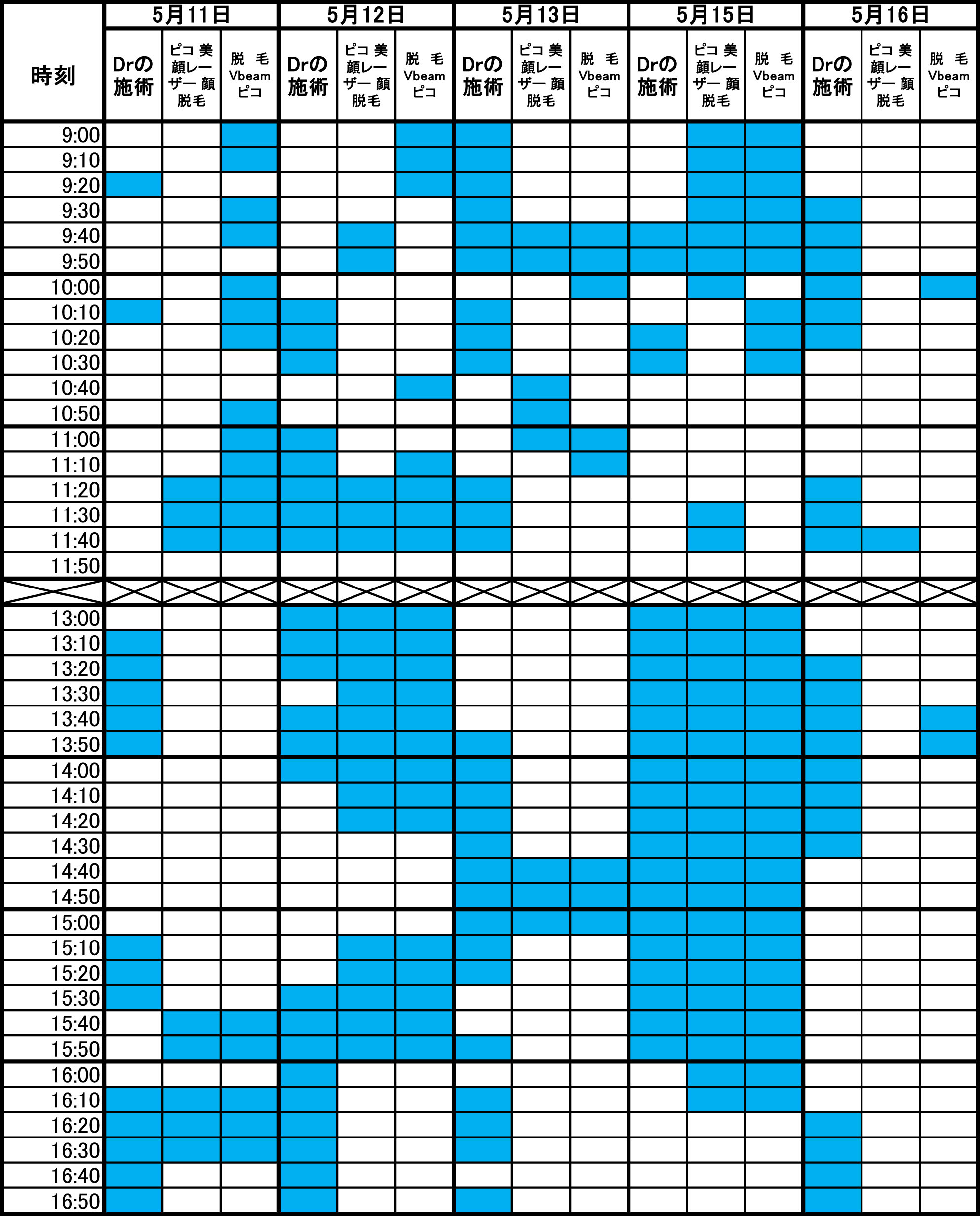 青色部分が空きです。 毎朝1回更新のため、すでに埋まっている場合があります。